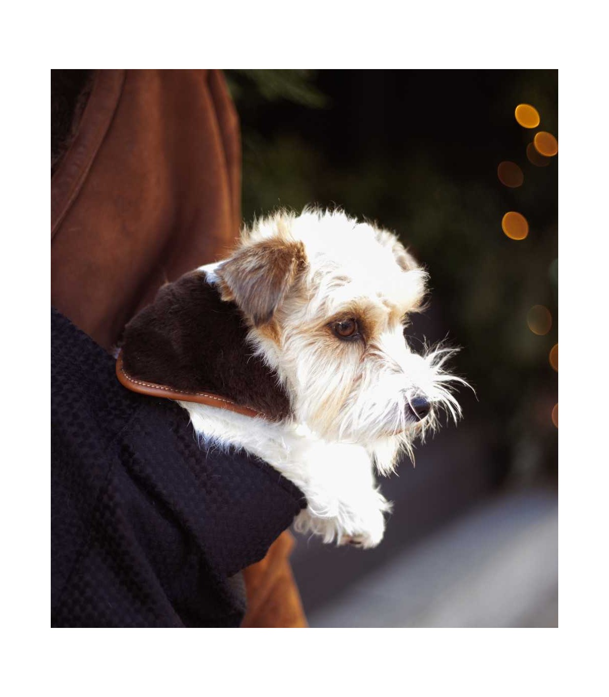 Confeccionada artesanalmente en Italia, esta bandana combina elegancia y funcionalidad. Realizada en suave pelo sintético y rematada con un reborde de piel de becerro de primerísima calidad, aporta un toque distintivo al look de tu perro mientras abriga su cuello en los días más fríos.