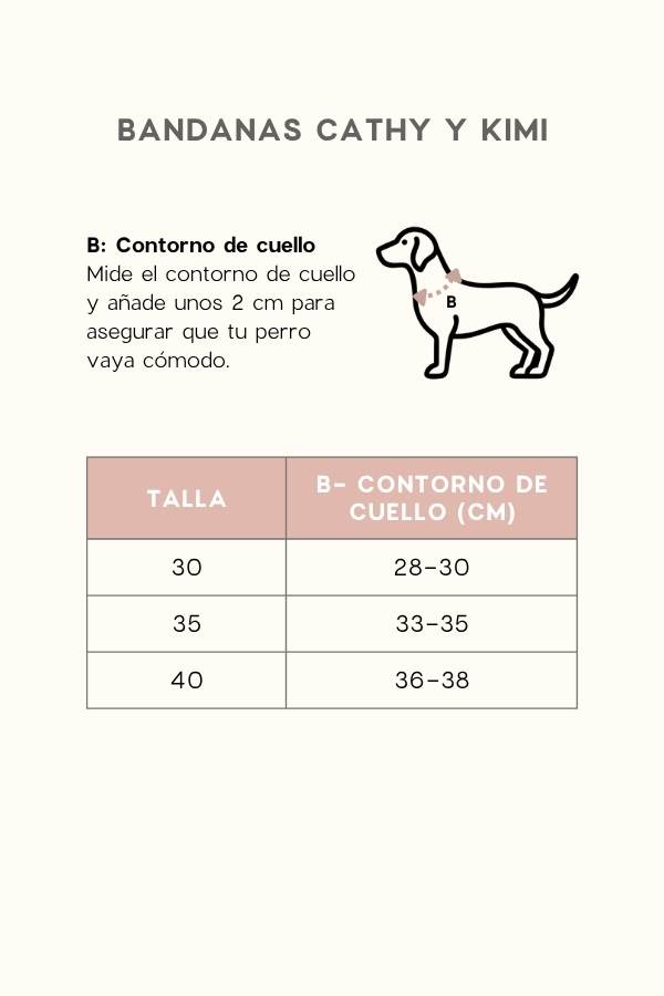 Disponible en tres tallas para adaptarse a perros pequeños y medianos. Consulta la GUÍA DE TALLAS específica de esta bandana para acertar con la talla que tu perro necesita.