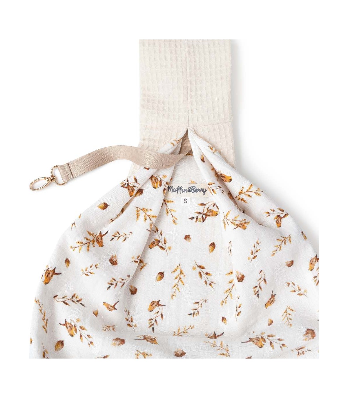 Además, la bandolera cuenta con un bolsillo exterior para poder guardar objetos pequeños, como su bebedero o sus chuches.