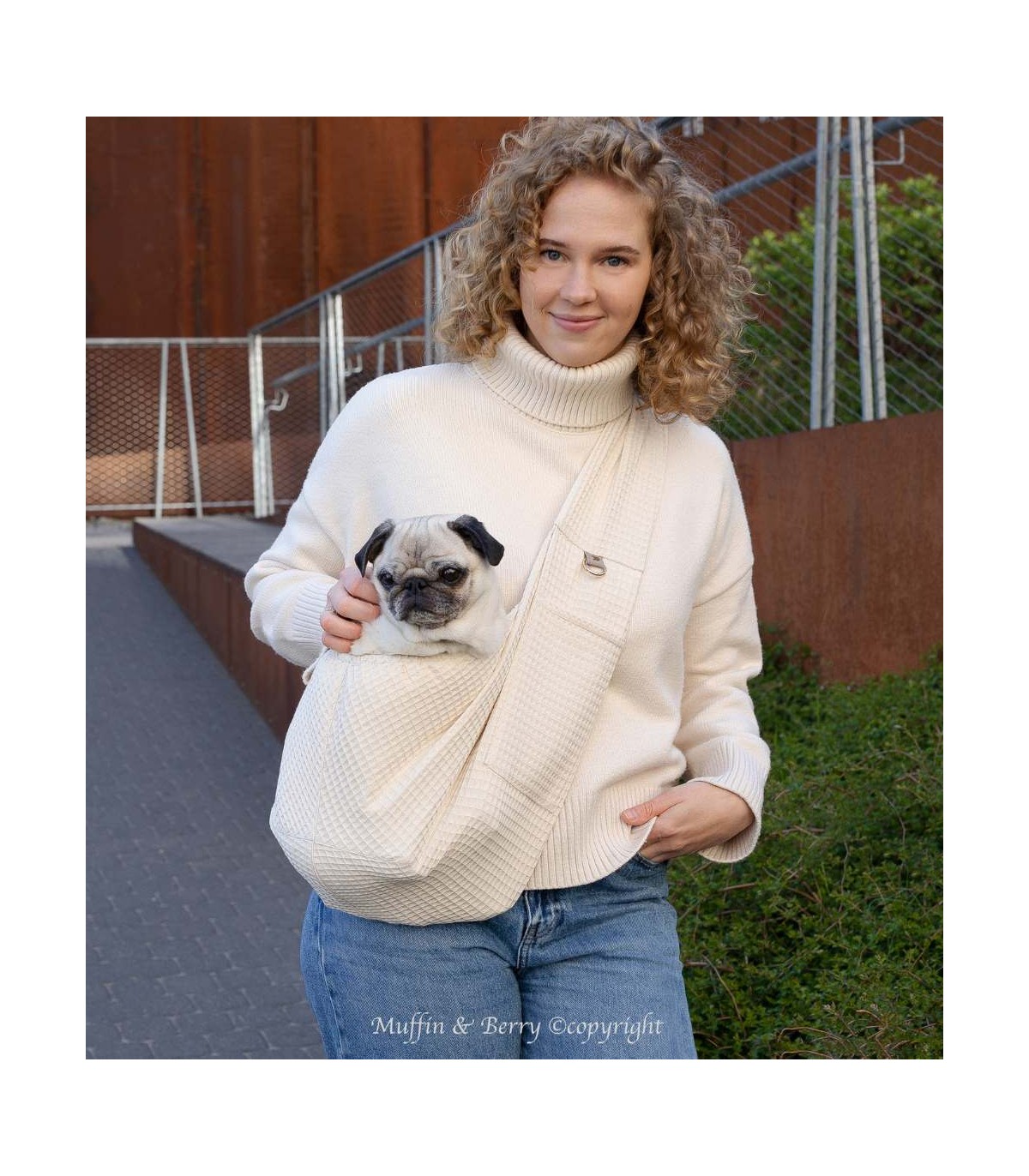 Esta bandolera es el accesorio ideal para pasear con un perro pequeño. Tanto si quieres llevarte a tu peludo de excursión, como a un paseo por la ciudad, cuando se canse agradecerás muchísimo contar con esta bandolera: solo tendrás que cruzártela al hombro, meter a tu perro y engancharlo al mosquetón de seguridad.