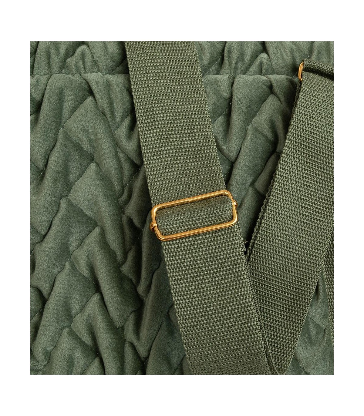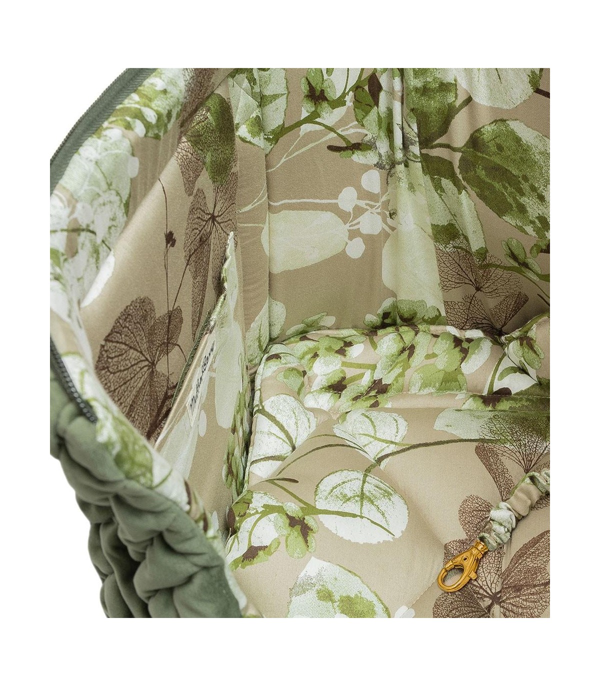 El bolso es acolchado y muy ligero para que no te pese y tiene una textura aterciopelada que lo hace muy agradable al tacto (además de elegante). Se cierra por la parte superior con cremallera y, para que tu pequeño no pueda saltar y escaparse, tiene una tira con mosquetón en el interior de la que deberás agarrarlo cuando vais de paseo.