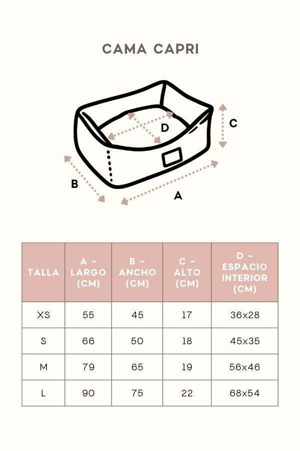Disponible en cuatro tamaños, de la XS a la L, para adaptarse a varios tipos de perros. Consulta en la Guía de Tallas de este producto las medidas de cada talla para acertar a la primera con la cama perfecta para tu perro.