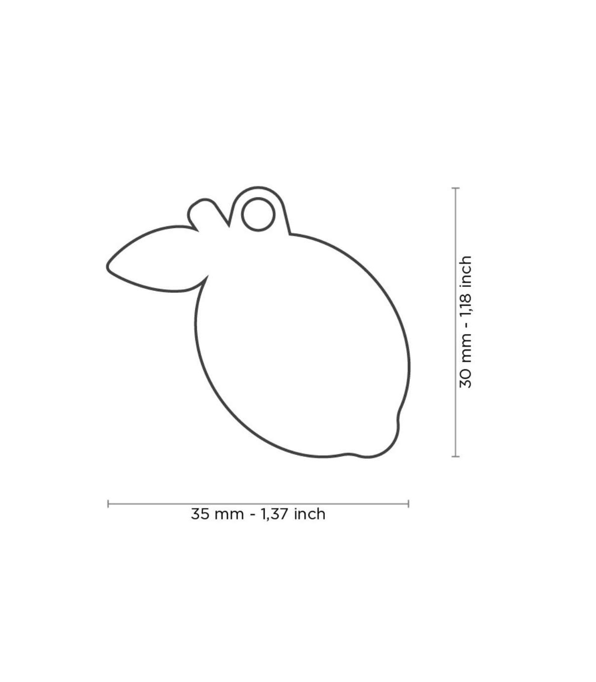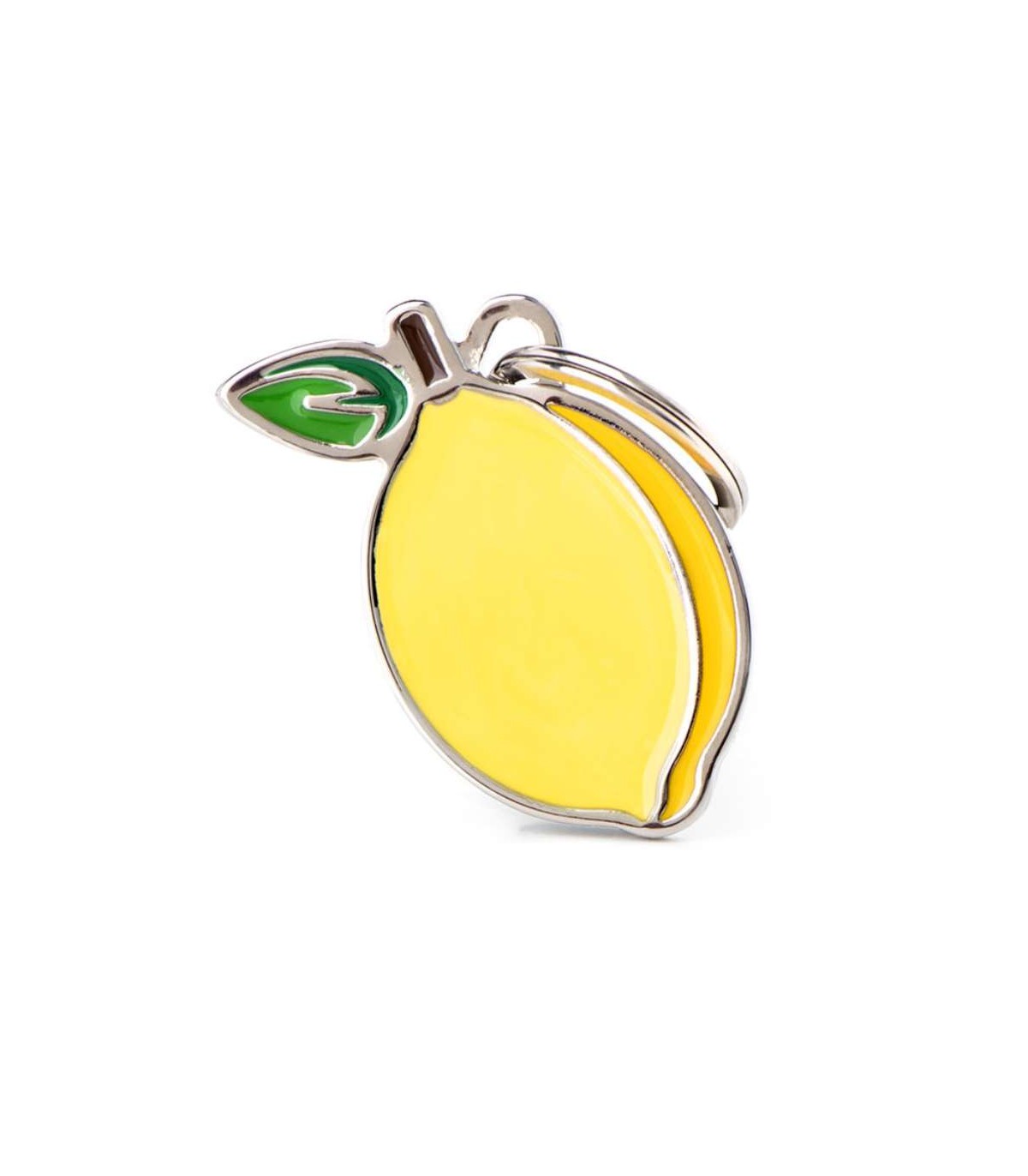 Chapa de identificación de la marca My Family con forma de un limón.