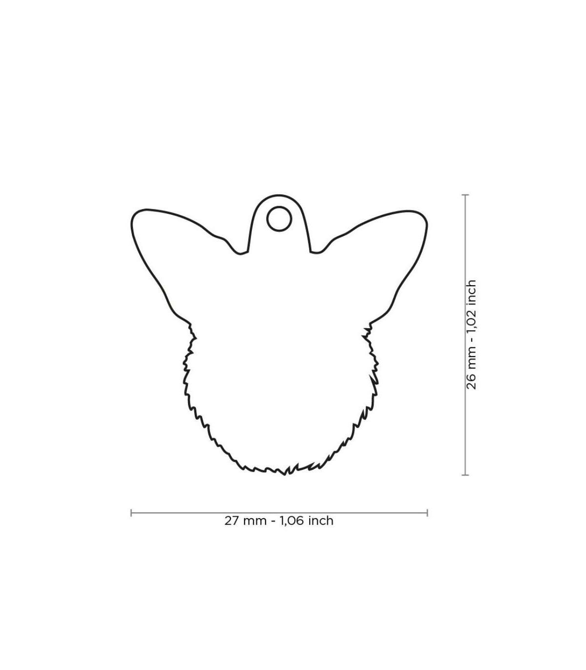 Chapa de identificación de la marca My Family con la carita de un corgi.