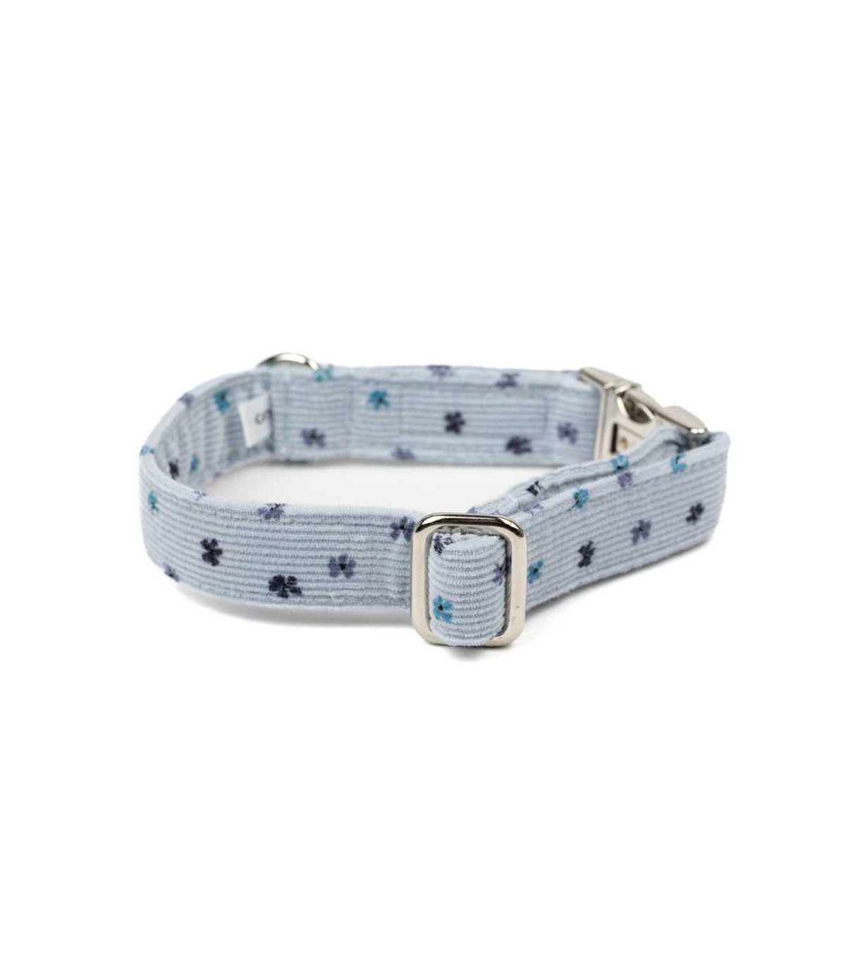 Está confeccionado con cinta de polipropileno muy resistente que se forra con tela de pana. Por ello, se trata de un collar resistente pero, al mismo tiempo, muy cómodo y blandito para tu perro.
