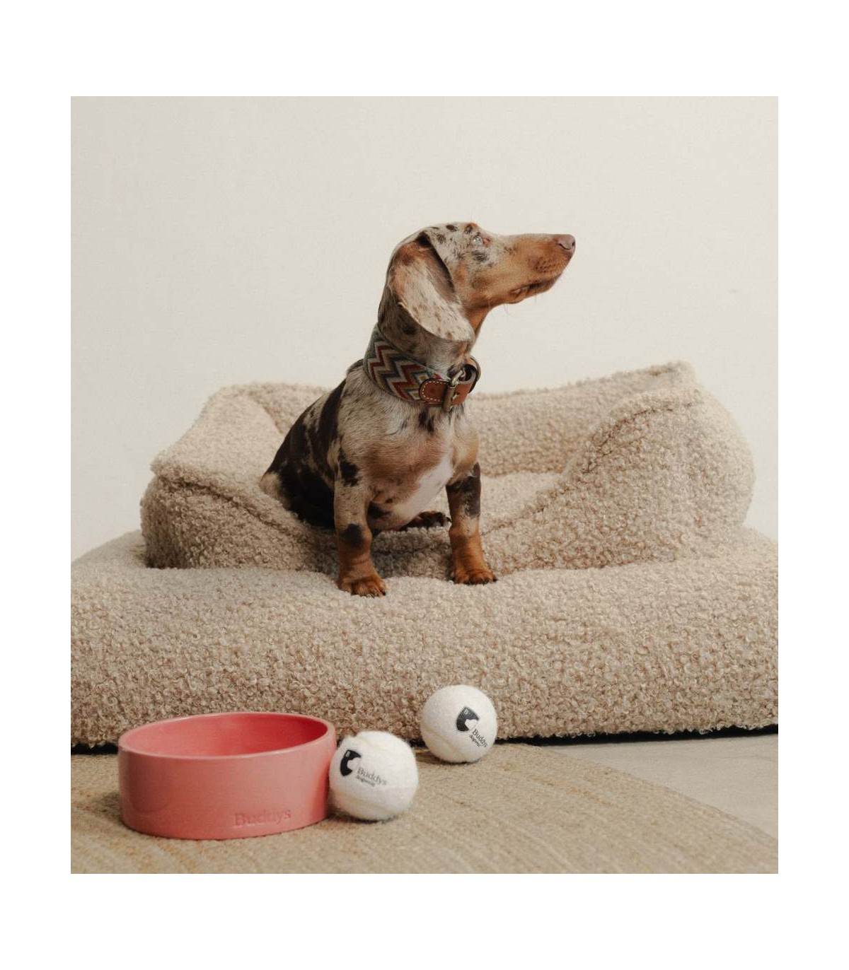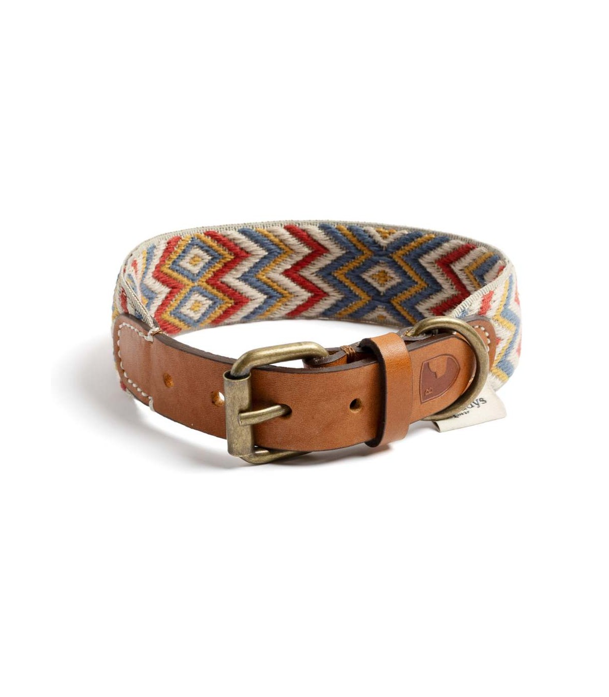 Collar para perro de la marca Buddys Dogwear. Elaborada artesanalmente en España con algodón orgánico trenzado y con remates en piel. Cierre es en niquel grabado Tela...