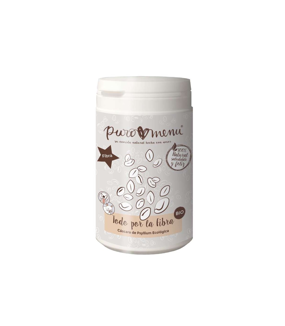 Pura Fibra de Puromenu is a 100% natural and premium quality supplement for dogs and cats, made from organic psyllium husk, which helps regulate intestinal transit and promotes healthy digestion.
