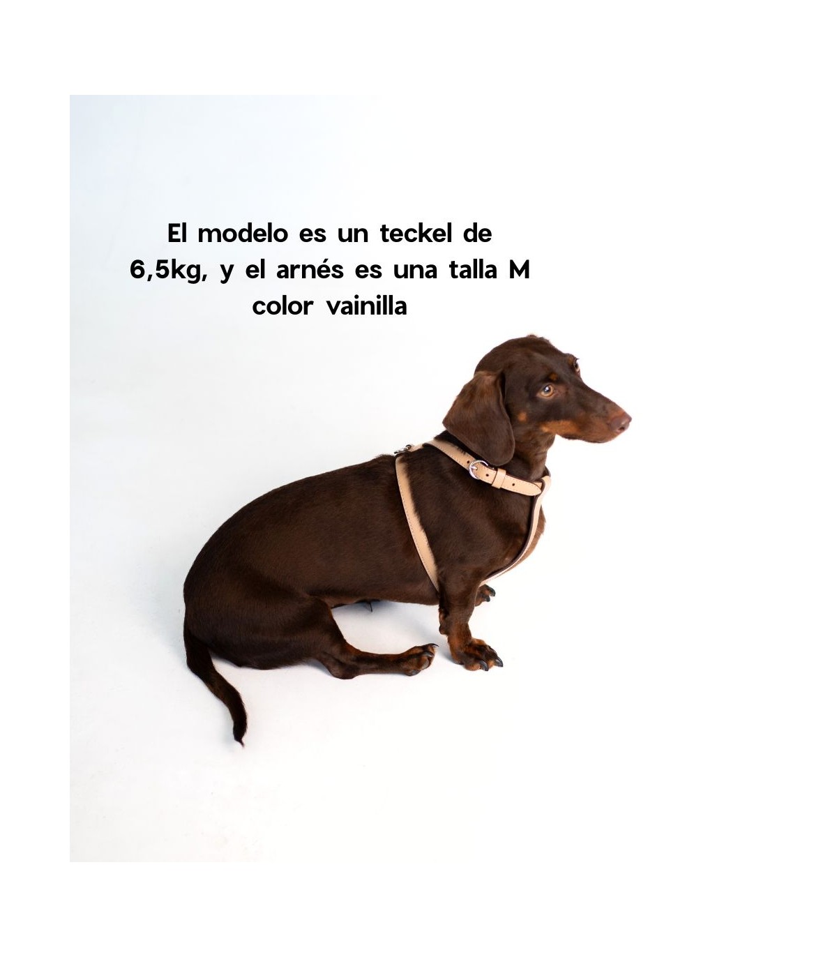 Este arnés tiene la particularidad de que la piel exterior es exactamente igual a la interior. De modo que la piel en contacto con tu perro es de primerísima calidad para respetar al máximo su pelaje.