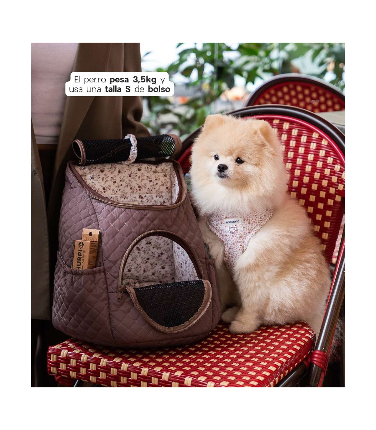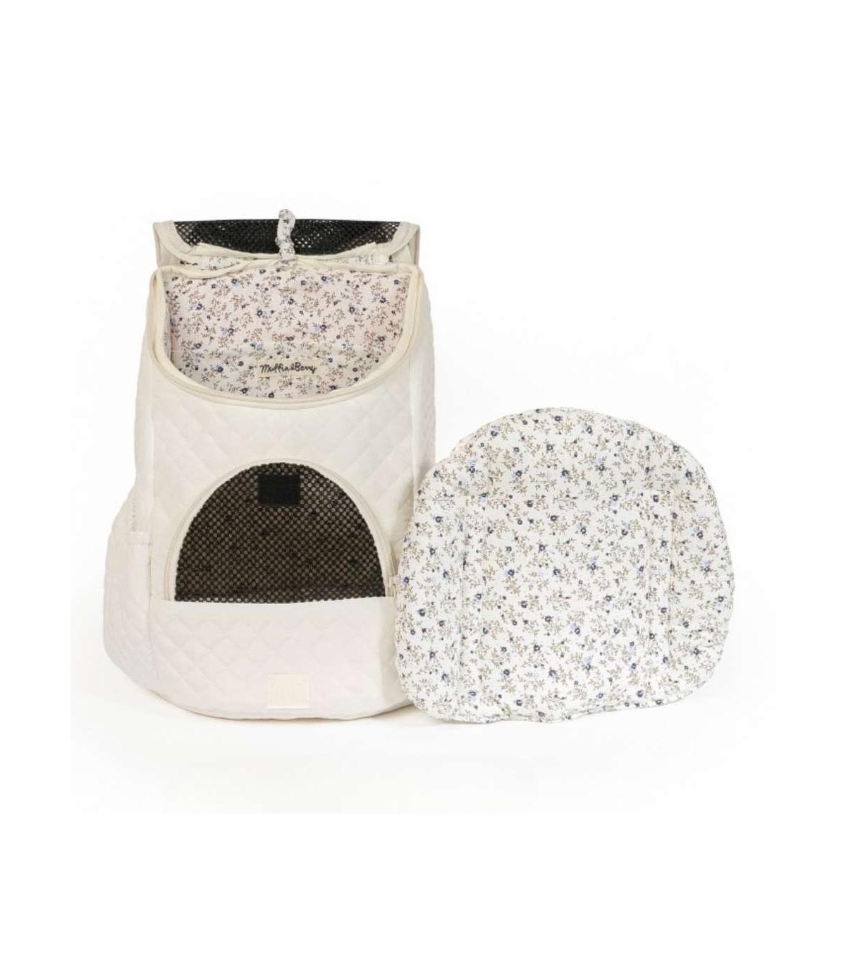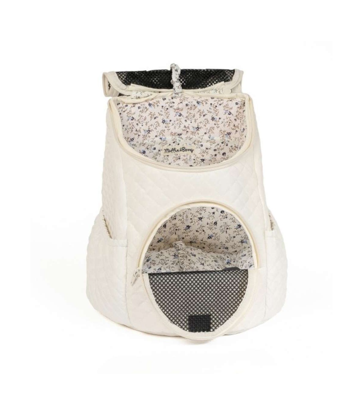 Backpack for small dogs from the brand Muffin & Berry. Handmade in Lithuania, with a beautiful interior print. Designed for maximum comfort for you and your dog.