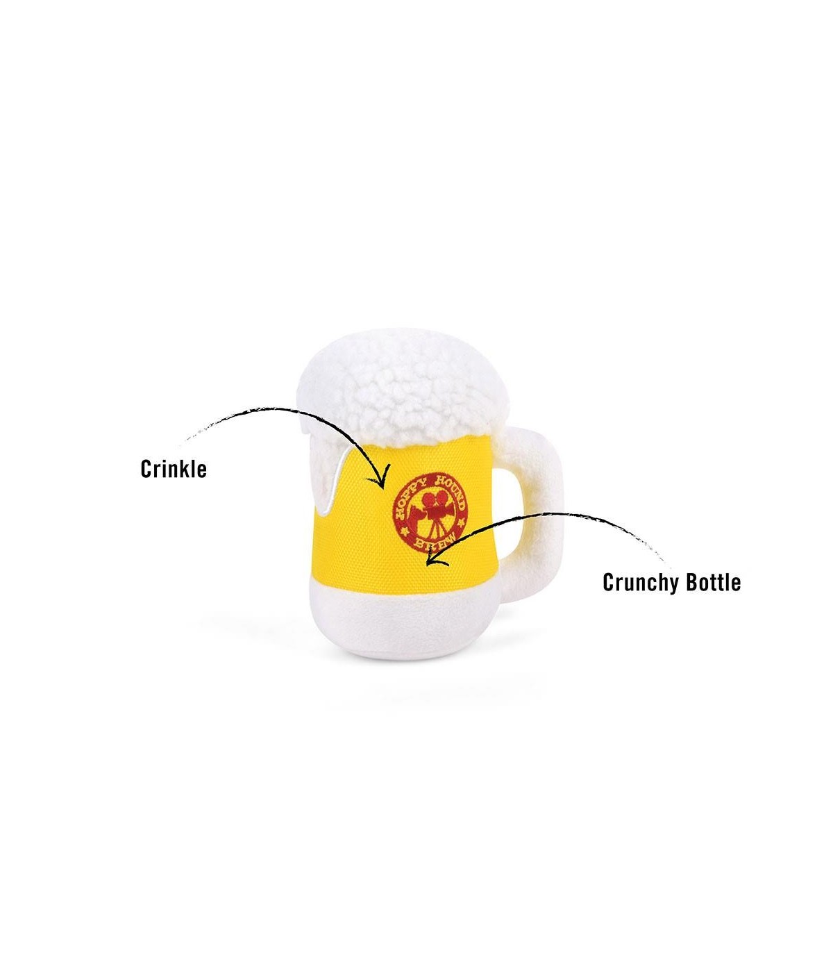 Dog toy from the P.L.A.Y. brand. This plush toy in the shape of a Beer is soft and cuddly. One part is slightly liquid-resistant.