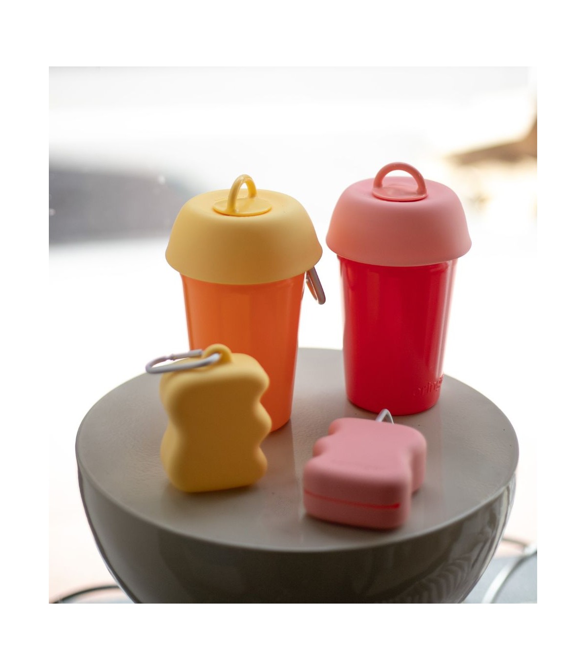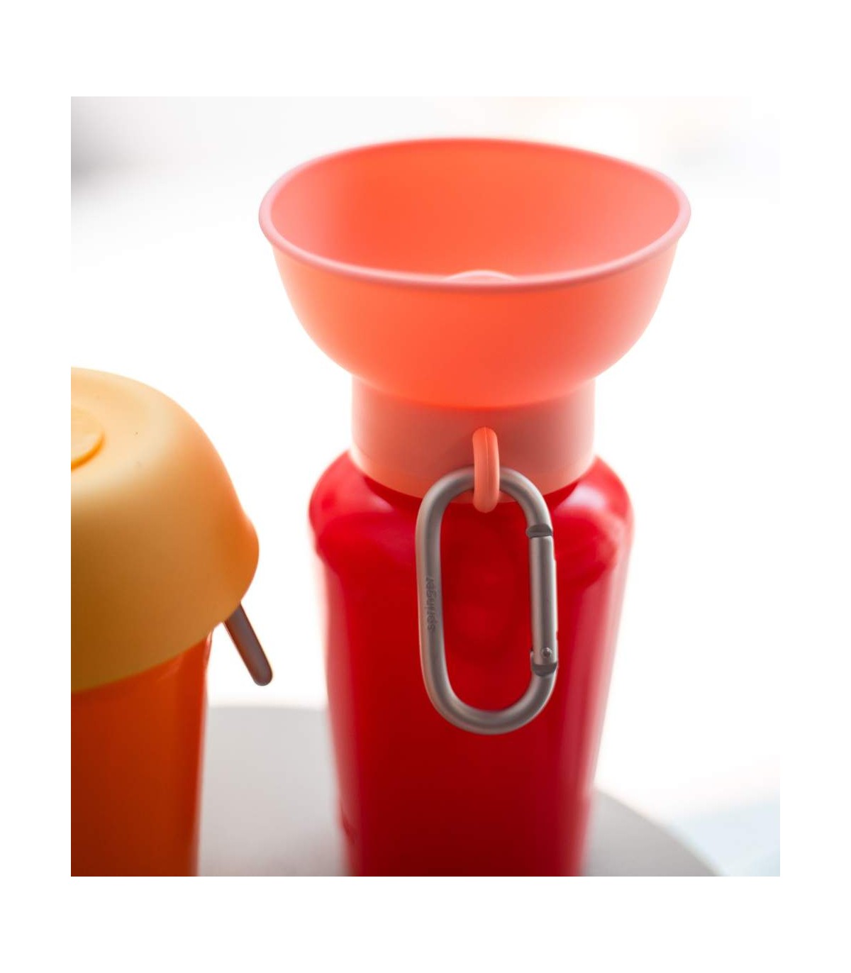 This bottle allows you to reuse water and never run out, for example, on long walks where you don't have access to water along the way. Additionally, with its carabiner clip you can attach it to the leash, bag, or backpack for easier transport.