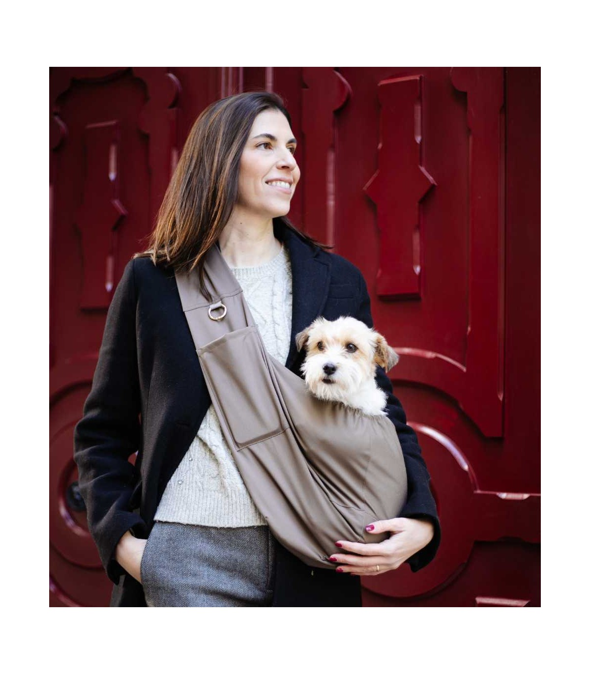 This bandolier is the ideal accessory for walking with a small dog. Whether you want to take your furry friend hiking or for a city walk, you will greatly appreciate having this bandolier when they get tired: just sling it over your shoulder, put your dog in, and attach them to the safety carabiner.
