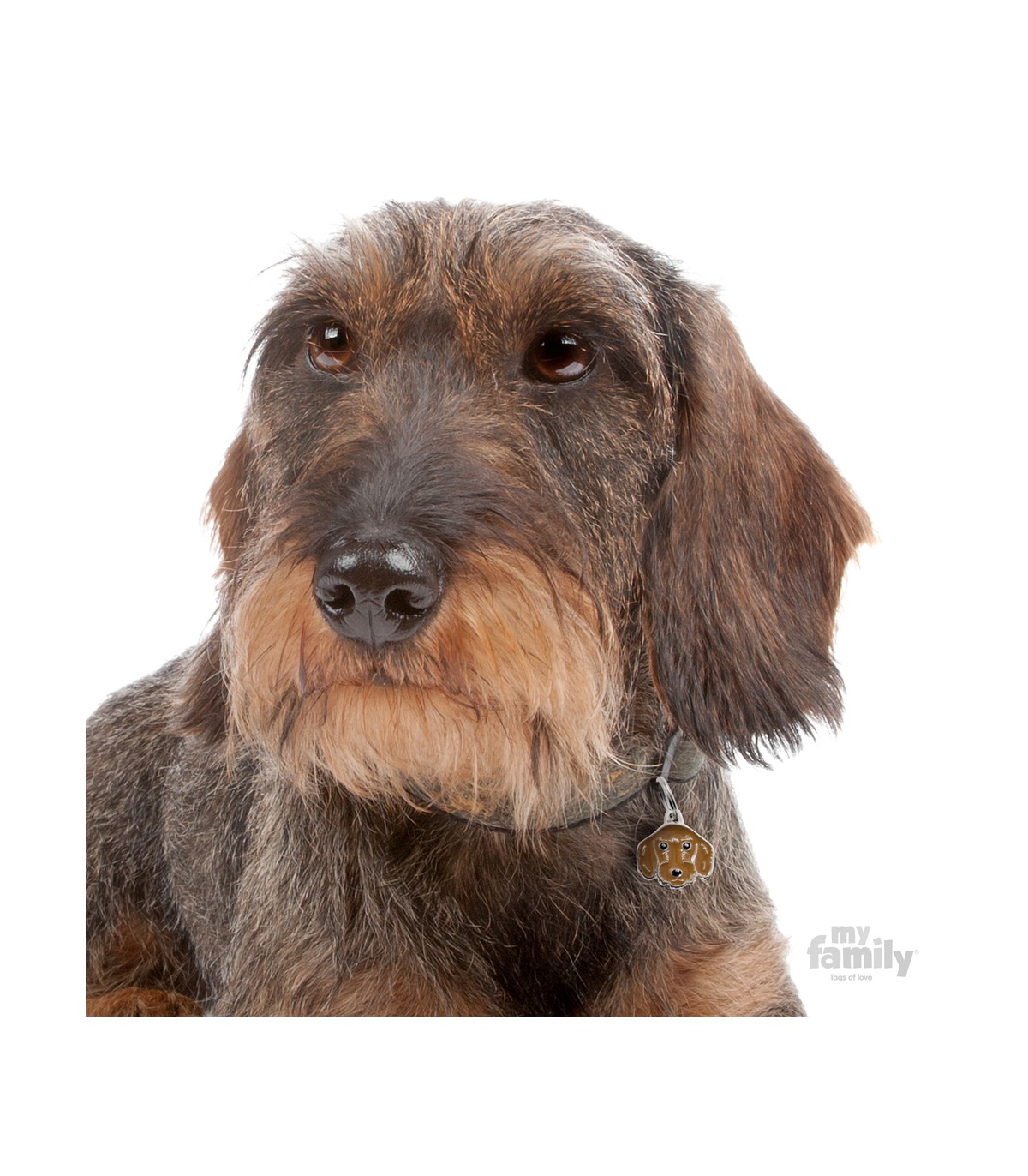 Identification tag for black wire-haired Dachshund. Personalize it however you want!