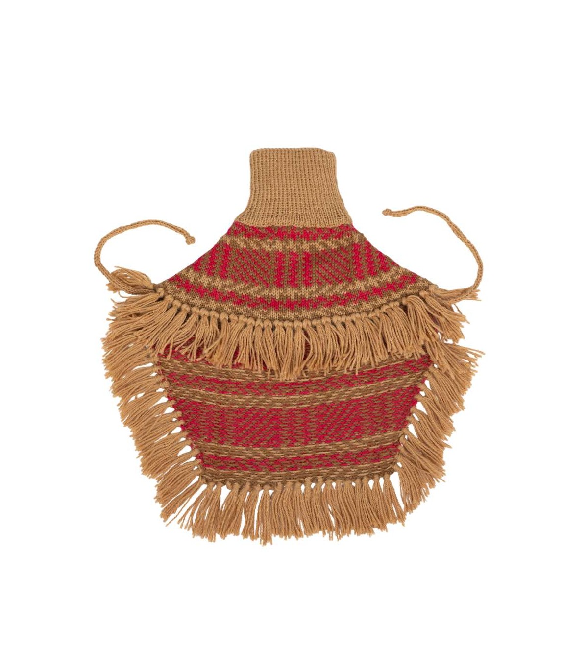 This poncho is one of the most unique items we have at Mascoboutique. To ensure a perfect fit, the poncho should be tied with a bow around the belly using the two strings shown in the image.