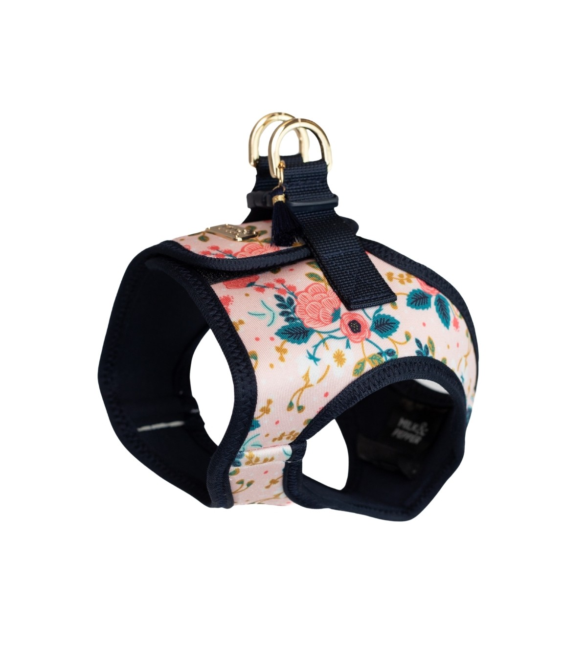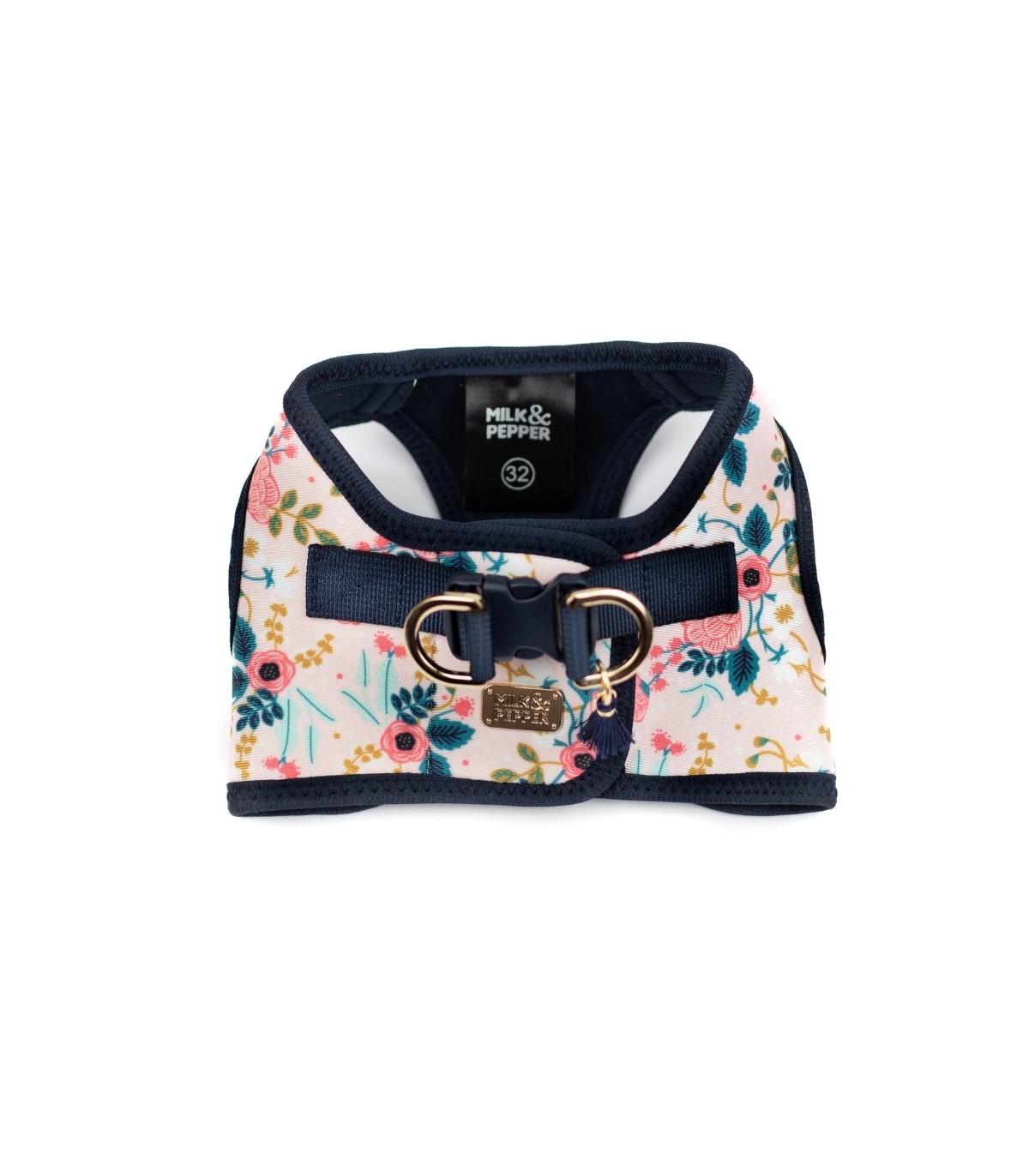 Harness for dogs from the brand Milk & Pepper. It features an ideal print of Japanese-style little flowers and is finished in navy blue.