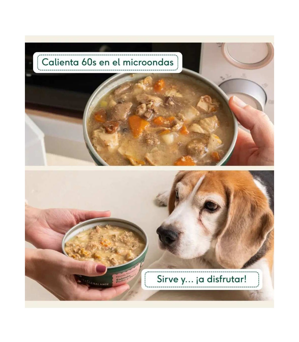 Su cómodo formato de 280 g permite servir la ración ideal en cada comida, adaptándose al tamaño y necesidades de cada perro. Están listas para servir, no requieren congelación, y se conservan perfectamente en despensa. Una vez abiertas, se recomienda guardar en la nevera y consumir en un máximo de 24 horas.