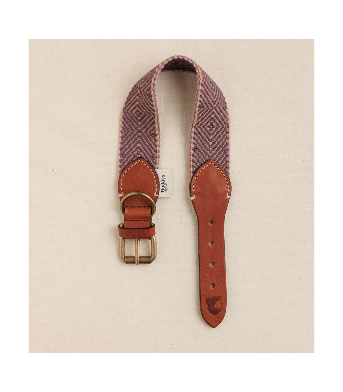Collar para perro de la marca Buddys Dogwear. Elaborado artesanalmente en España con lona de algodón orgánico y con remates en piel de procedencia italiana. Esta colección aporta un toque de elegancia italiana y encanto desenfadado al armario de verano de tu perro.