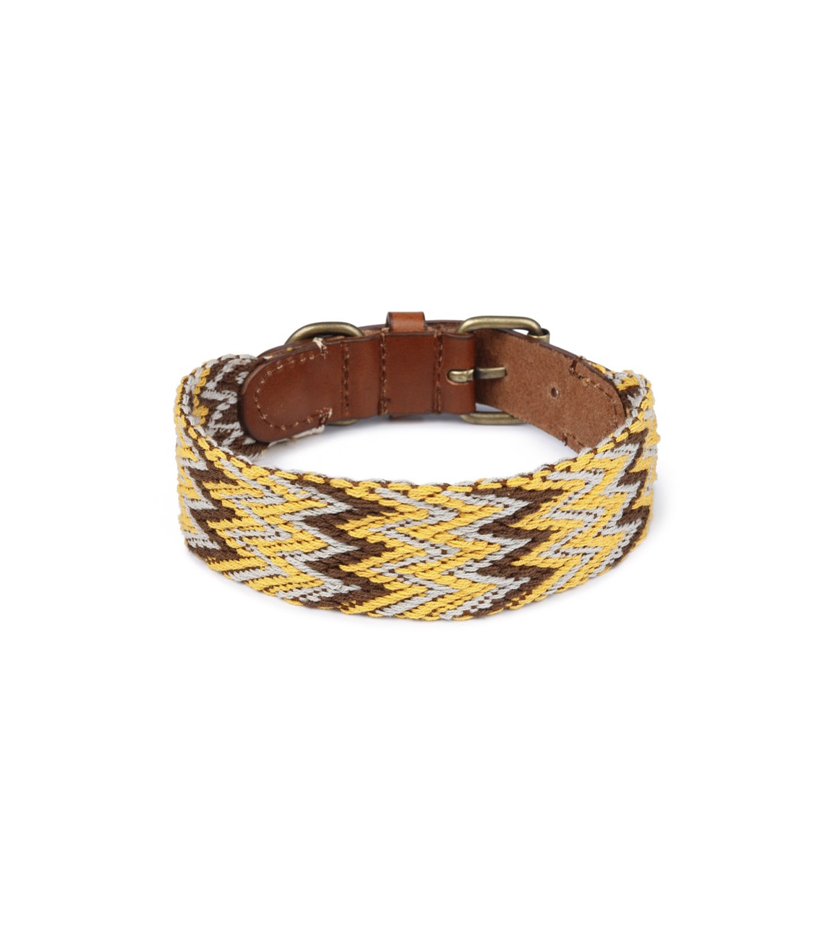 Collar para perro de la marca Buddys Dogwear. Elaborado artesanalmente en España con lona de algodón orgánico y con remates en piel de procedencia francesa. Este collar tiene un diseño étnico y colorido que te enamorará.
