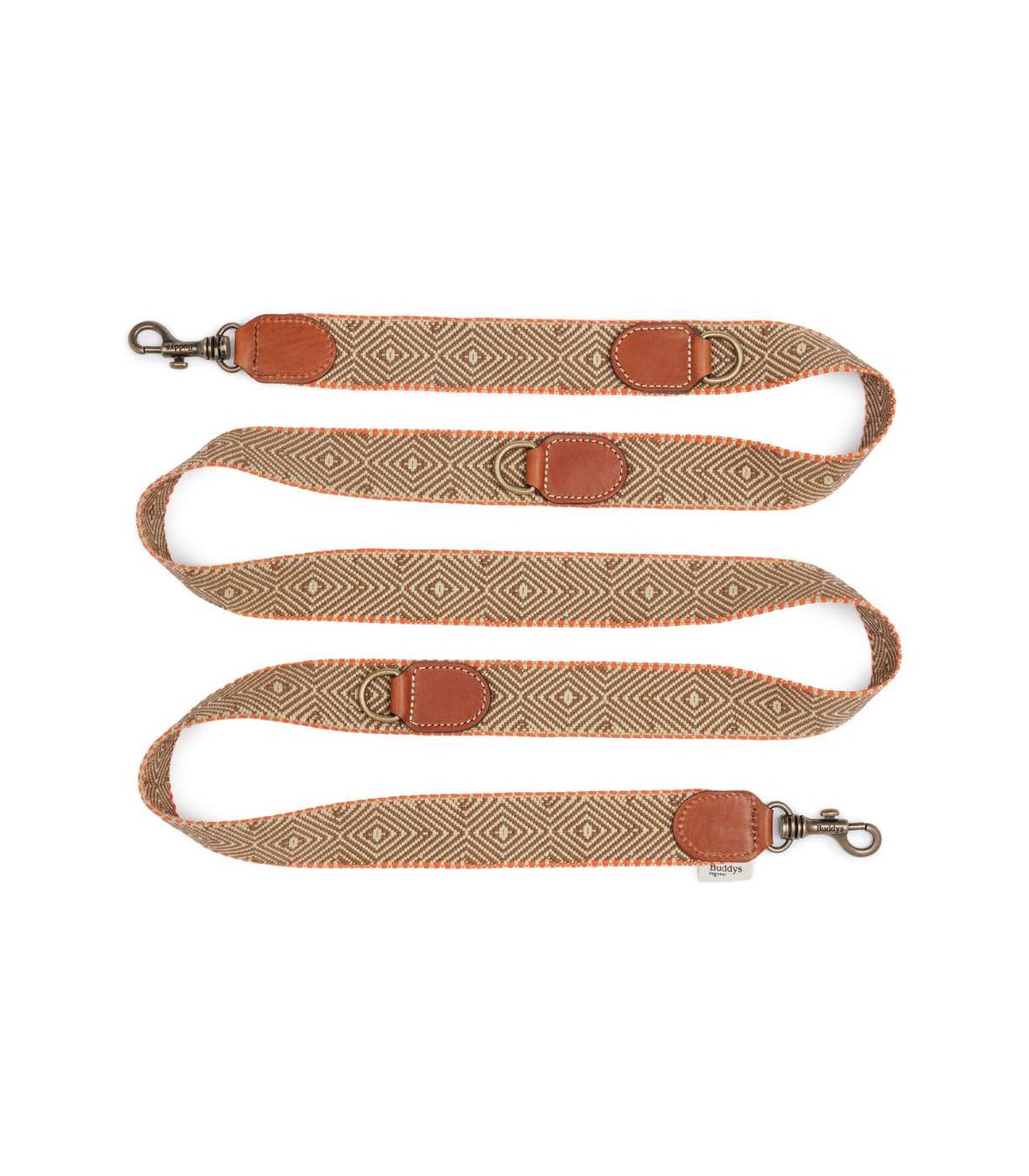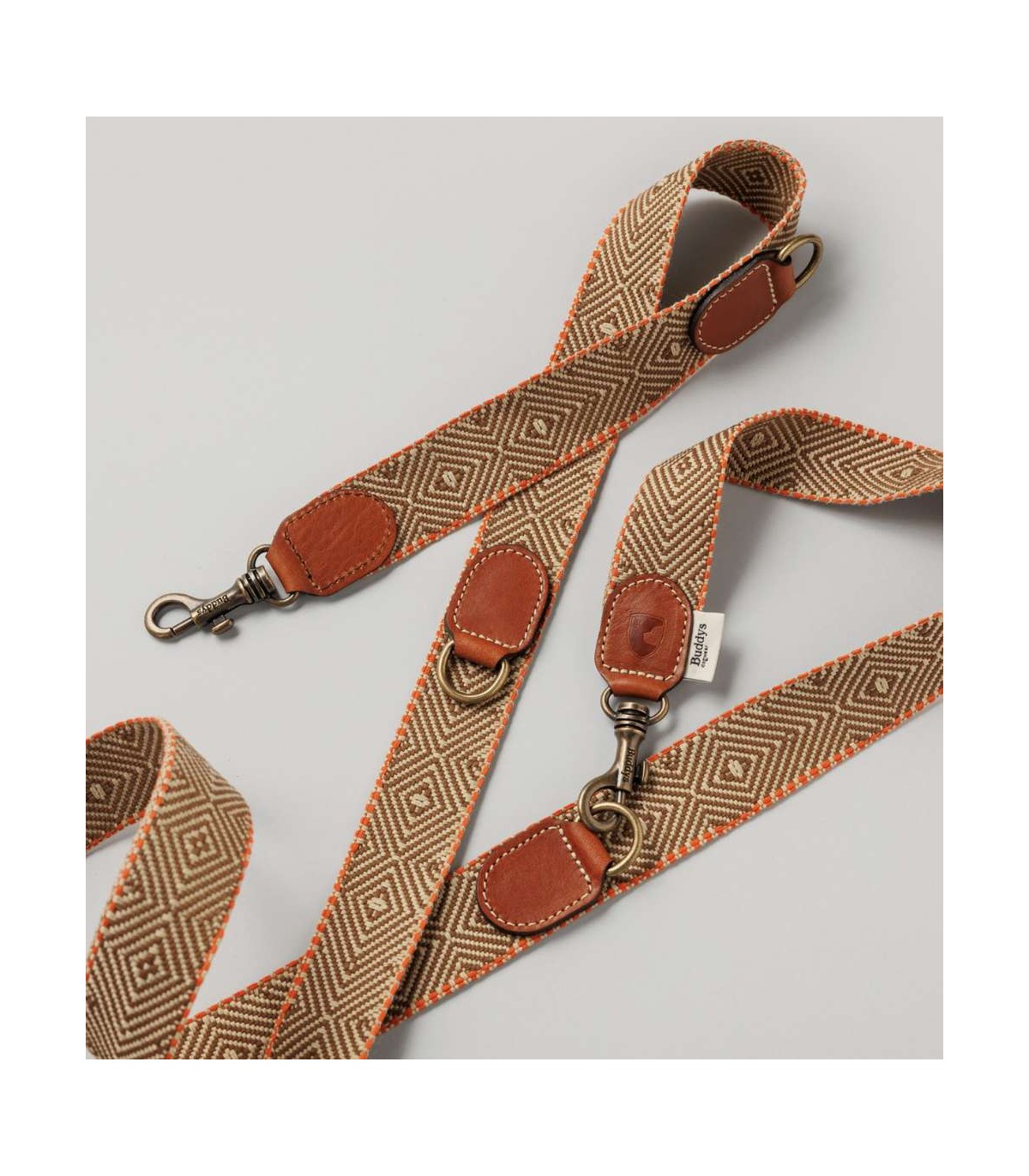 Correa para perro de la marca Buddys Dogwear. Elaborada artesanalmente en España con lona de algodón orgánico y con remates en piel de procedencia italiana. Esta colección aporta un toque de elegancia italiana y encanto desenfadado al armario de verano de tu perro.