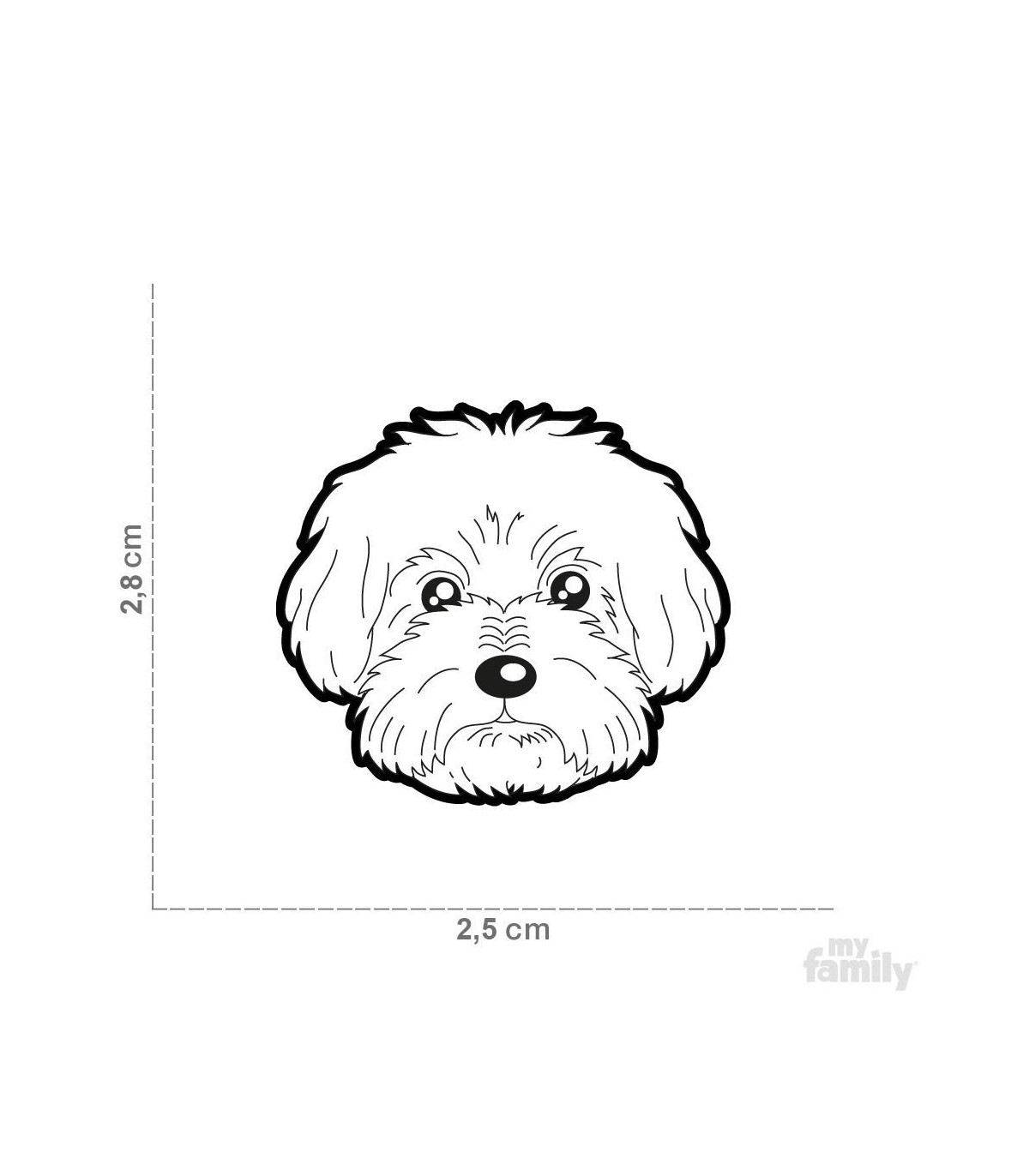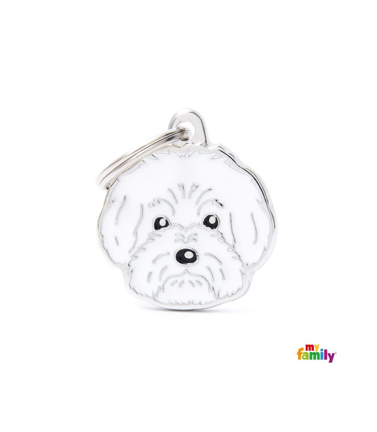 Identification tag from the brand My Family with a portrait of a Bolognese bichon. It is hand enameled and made with hypoallergenic materials. Thanks to this tag, your dog will be well identified by having their information on their collar or harness. Personalizing the tag is FREE! You can engrave up to 3 lines on the back (pet's name, phone number, etc.), however, due to its size, we recommend personalizing it with a maximum of 2 lines. Just tell us what to put on each line in the PRODUCT CUSTOMIZATION fields and click "Save customization" before adding the product to your shopping cart.