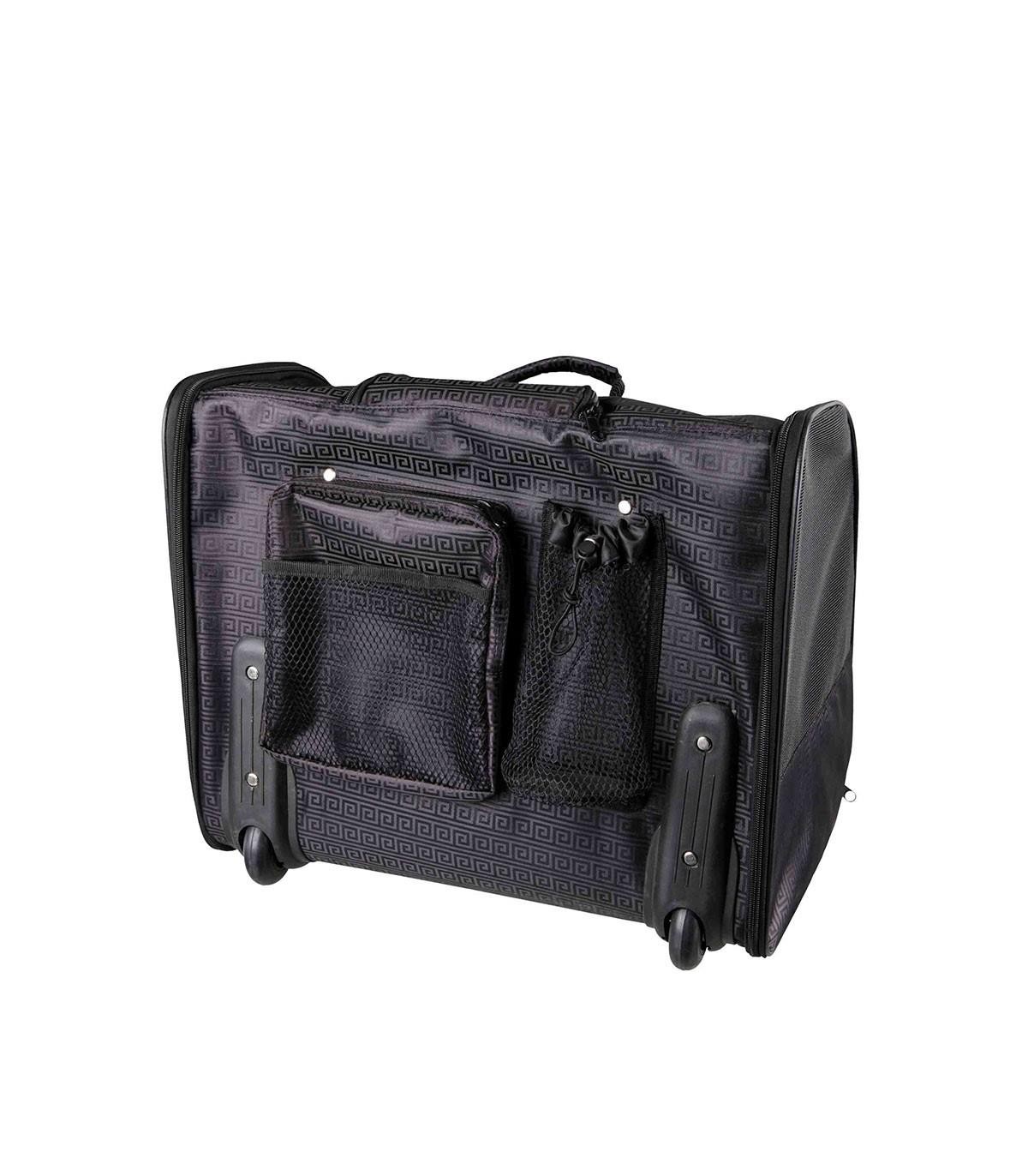 Este trolley es perfecto si no quieres cargar con el peso de tu perro. El asa retráctil sube hasta 95 cm para que puedas llevarlo cómodamente y se esconde por completo en un bolsillo a medida. Además, cuenta con un asa de nylon para llevarlo como bolso de mano de forma momentánea (subir escaleras o aceras).