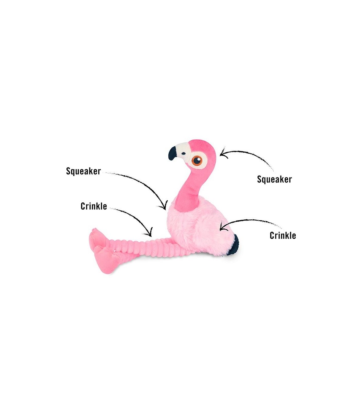 Dog toy from the brand P.L.A.Y.. This Flamingo-shaped plush toy is very soft and cuddly.