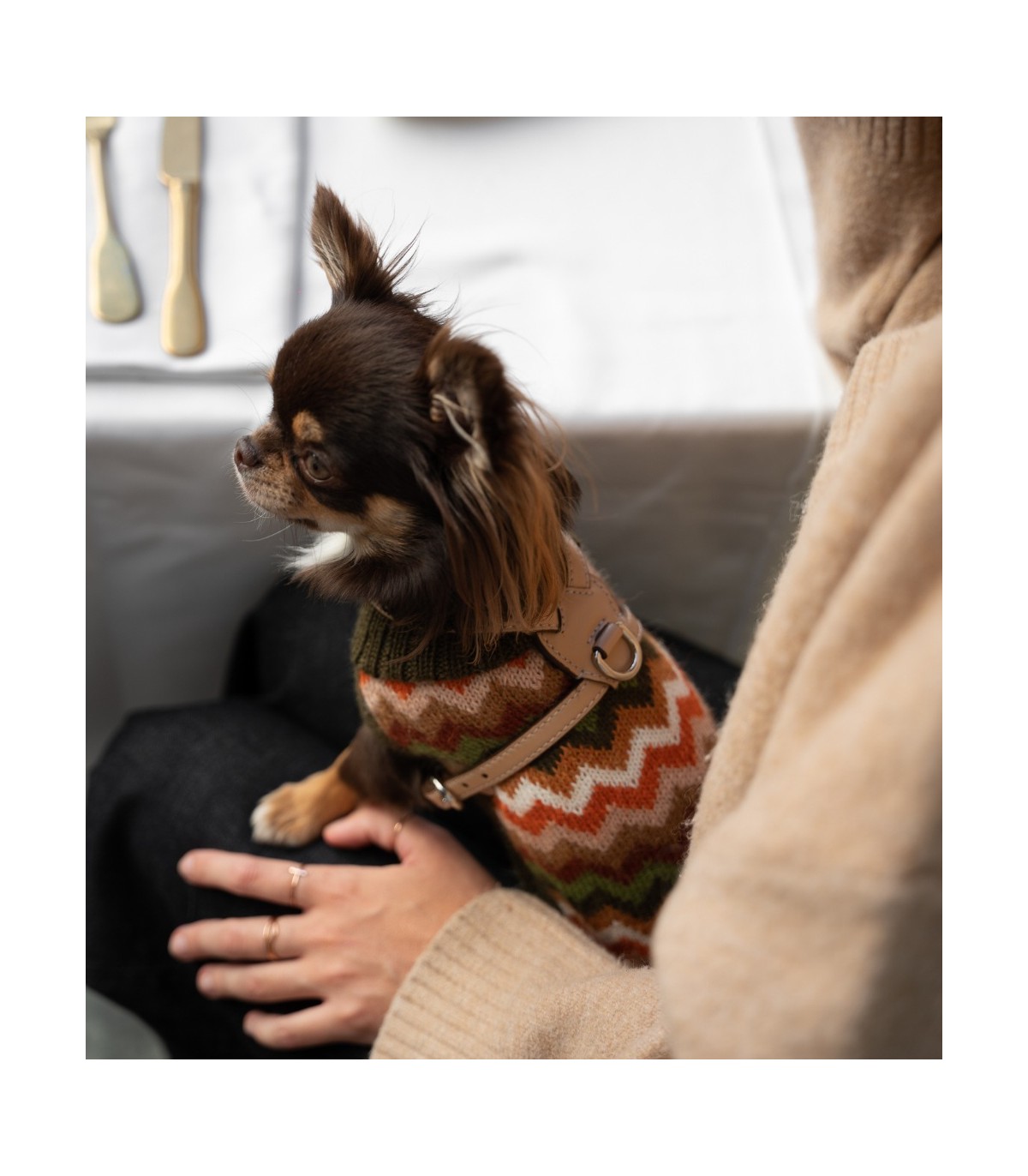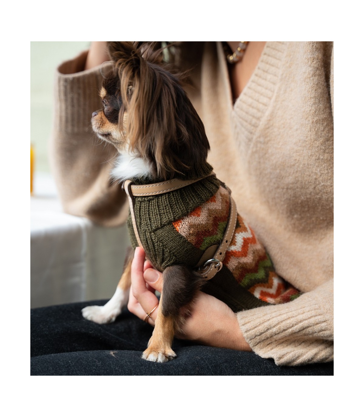 The exceptional quality of this sweater ensures that it lasts season after season and does not pill. Due to its alpaca wool composition, it is hypoallergenic and very soft to the touch for your dog's comfort.