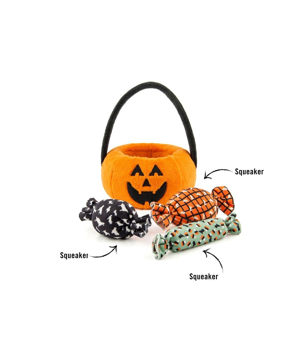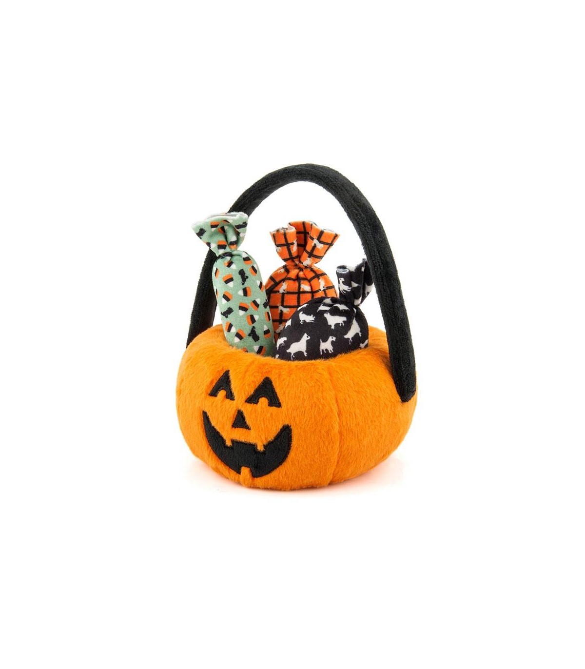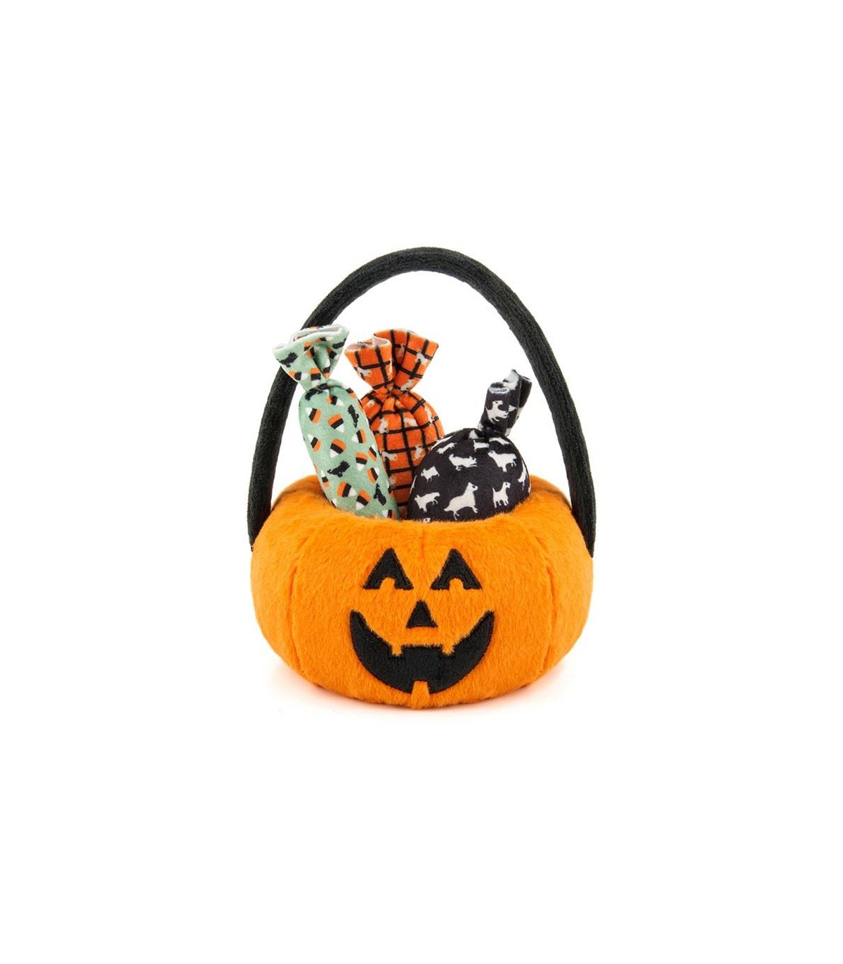 Trick or Treating? Celebrate Halloween with your furry friend thanks to this stuffed toy in the shape of a candy basket. We assure you that it will be your dog's favorite. The basket is stuffed while the candies (which are attached to each other) have a small horn inside and can be put in and taken out. This toy will ensure hours of fun for your dog.