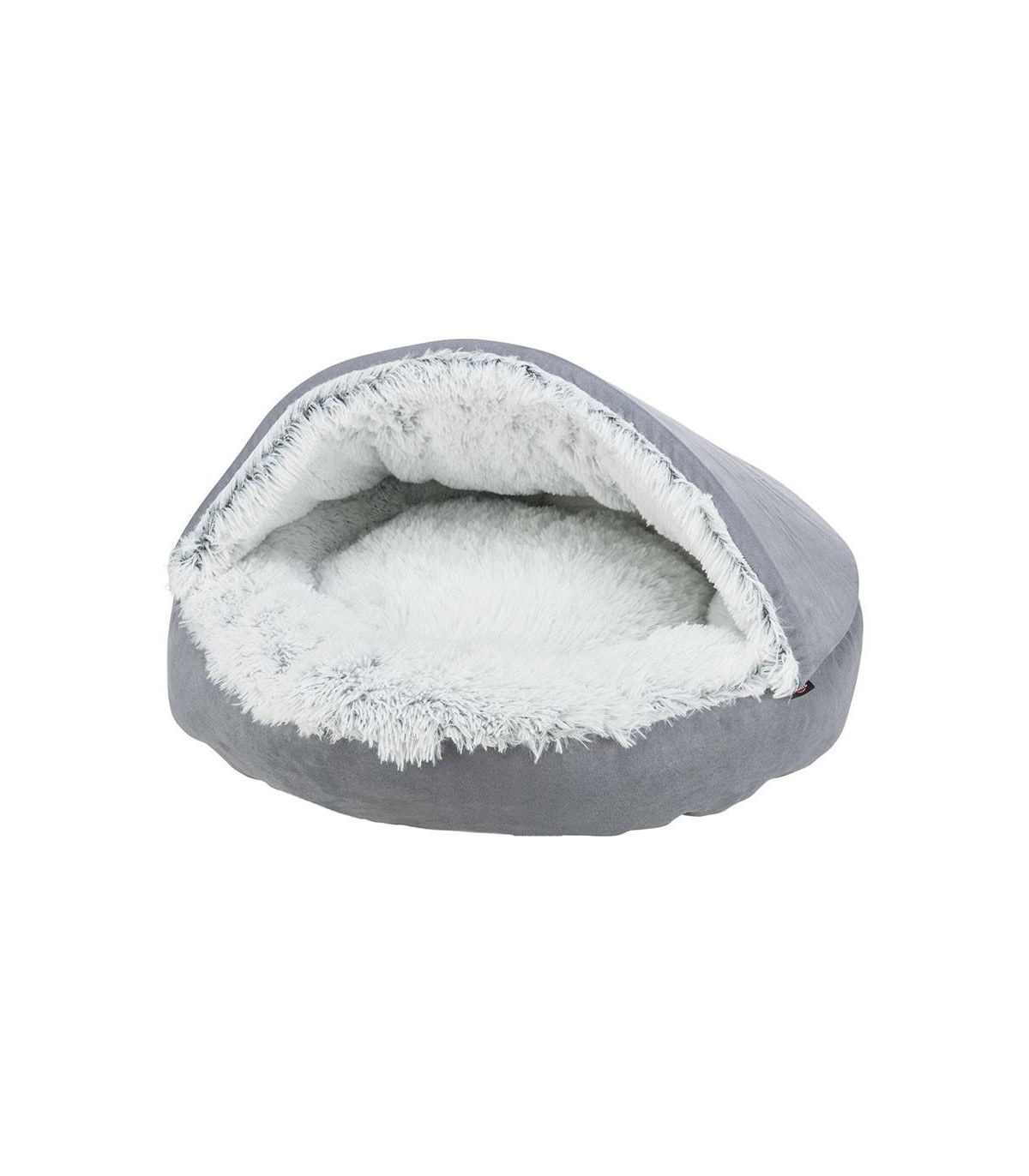 Bed-cave for dogs from the Trixie brand, in gray and with fur inside.