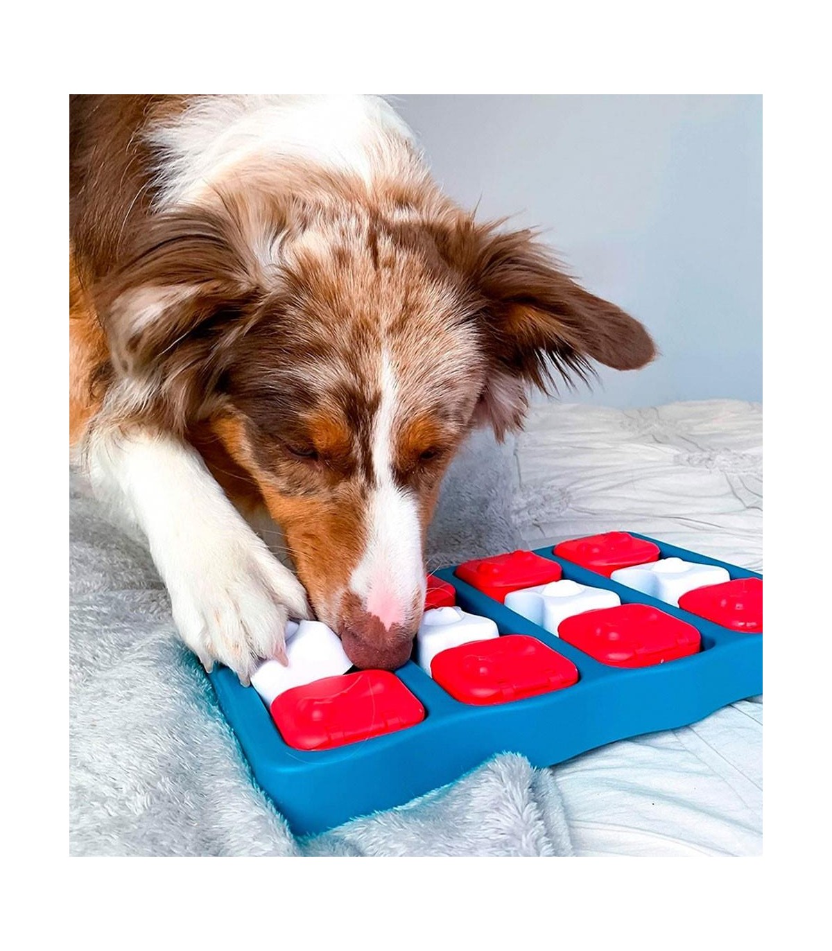 ¿Cómo jugar? Coloca los premios en los compartimentos y escóndelos con los distintos resaltos (bien subiendo la tapa, bien deslizando). Cuantos más snacks haya tapados, mayor dificultad en el juego. Tu perro se lo pasará pipa buscando gracias a su olfato.