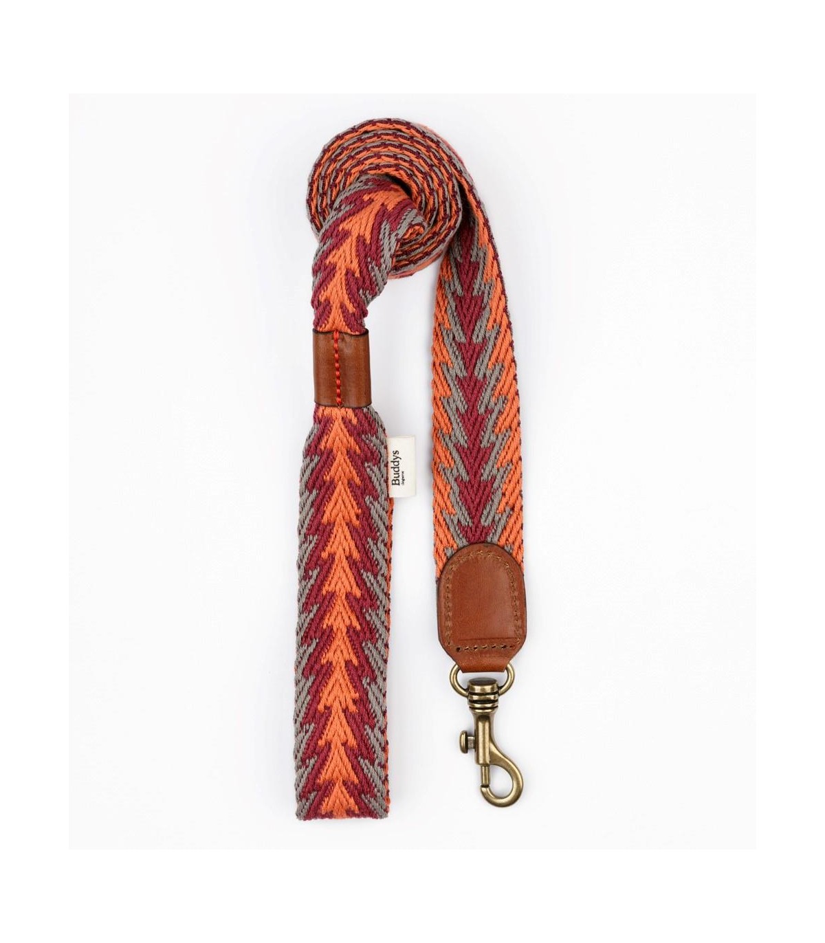 Leash for dogs handmade with organic cotton canvas in red, blue, and white colors with leather finishes. This is a spectacular leash designed to look great during city walks.