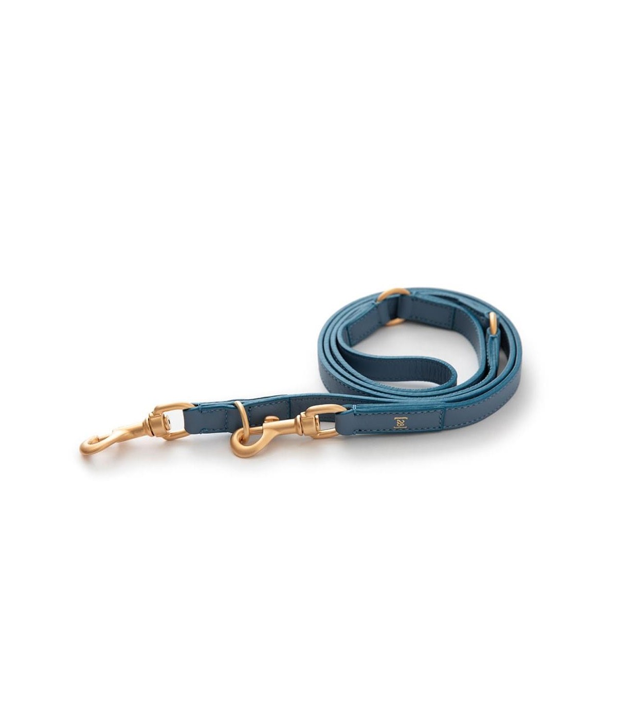 Leash multiposición de piel, suave y flexible, en un color azul empolvado que te conquistará.