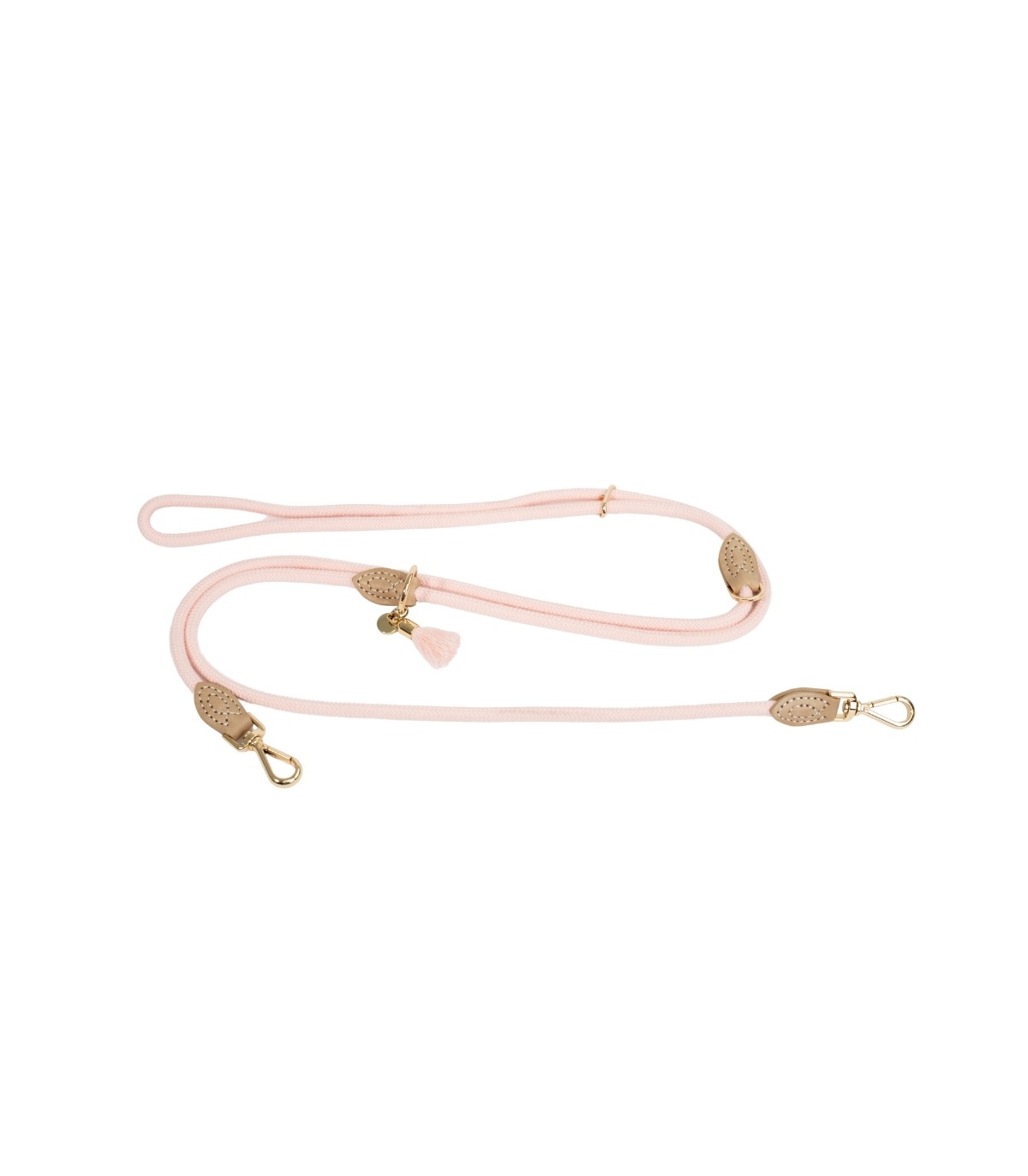 Multiposition leash for dogs by the brand Milk & Pepper. This leash made of resistant cord and synthetic leather finishes is one of the matching leashes for the Kaya Rosa Harness.