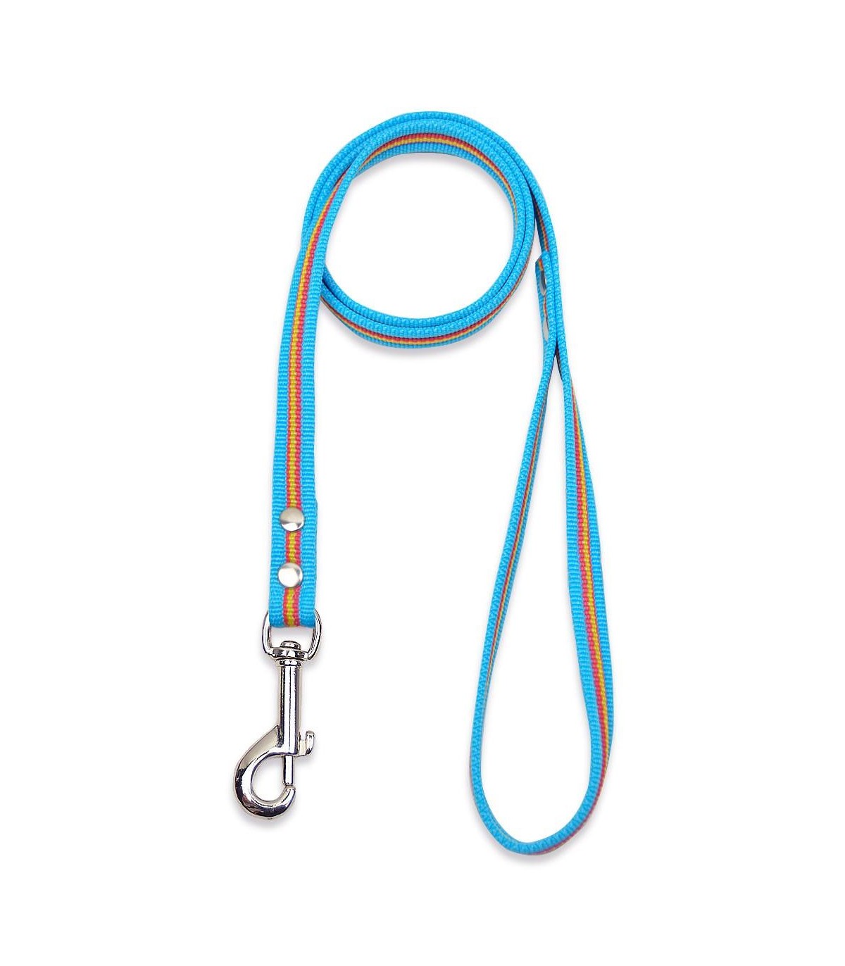 Esta correa plana con la bandera de España sobre fondo azul clarito, está hecha de nylon. Es fino y ligera pero muy resistente. El mango es del mismo material, también plano, lo que la hace muy cómoda de llevar.