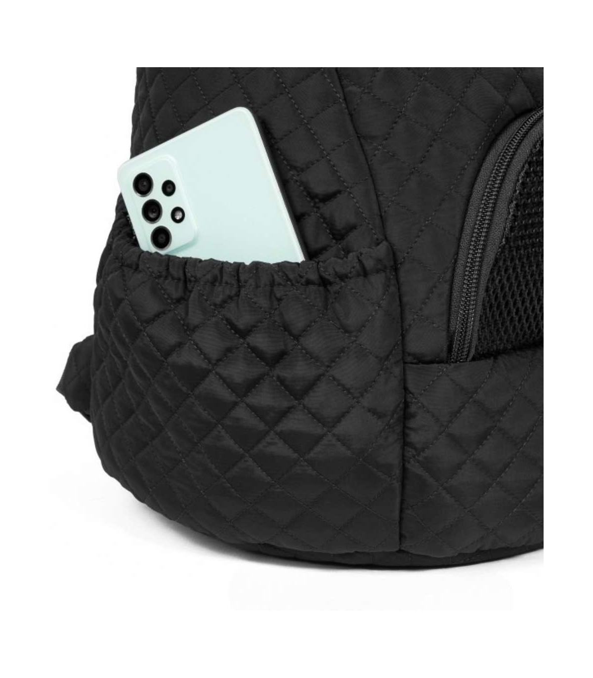 It features two exterior side pockets to store their things (treats, bags, toys...) or yours.