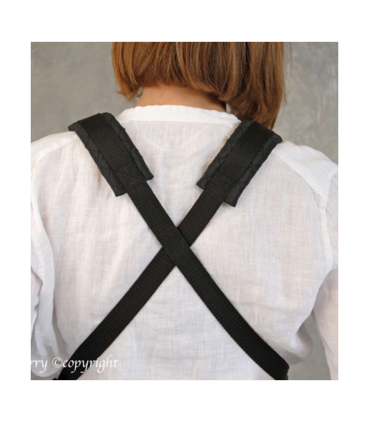 It is lightweight and padded, so it won't weigh you down. We recommend wearing it in the front, to keep an eye on your dog at all times. You can adjust the handle height to fit you comfortably.