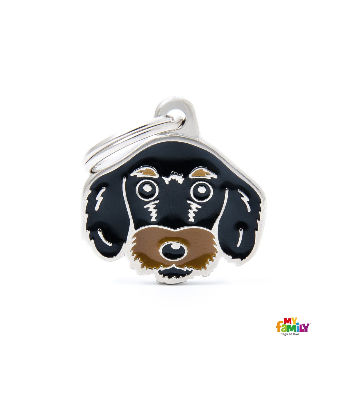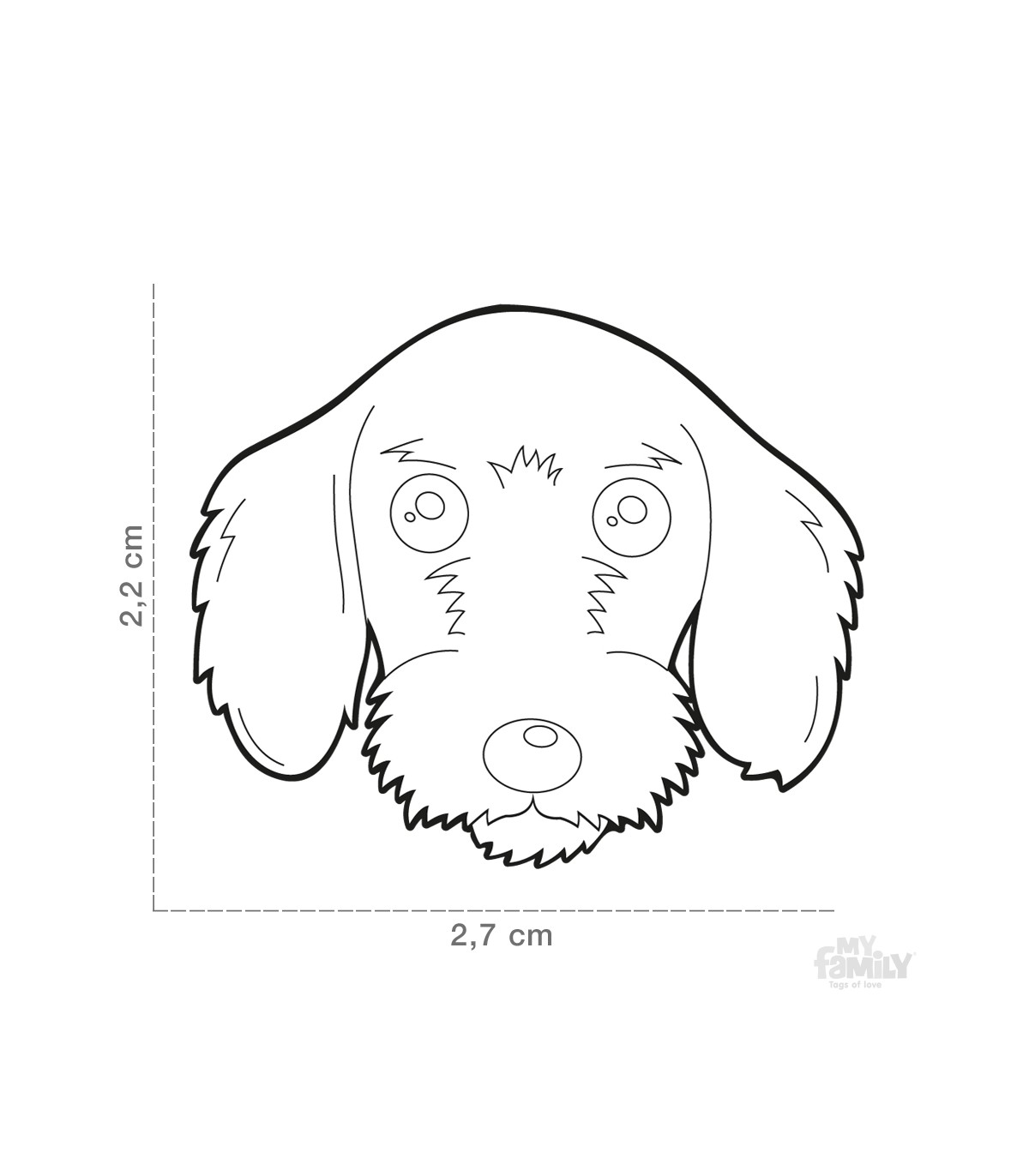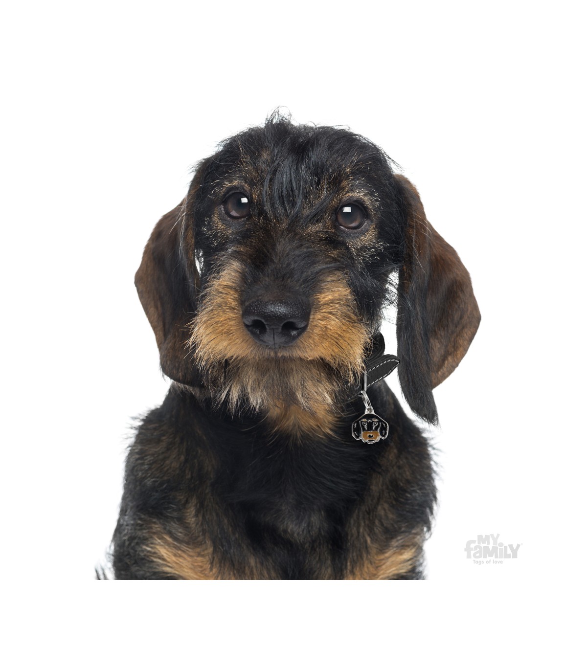 Identification tag for a brown wire-haired Dachshund. Personalize it however you like!