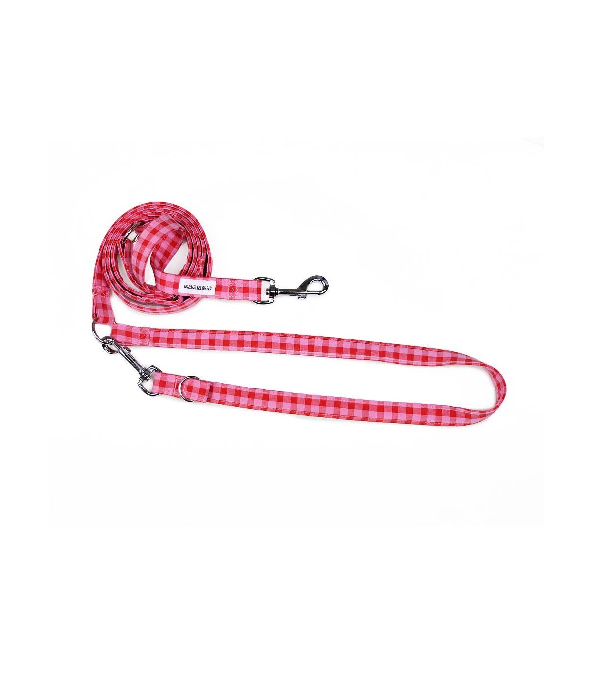 Esta correa multiposición está confeccionada de forma artesanal con tejidos compuestos de algodón y refuerzo interior de nylon. Con un precioso estampado Vichy en rosa y rojo, perfecto para el buen tiempo.