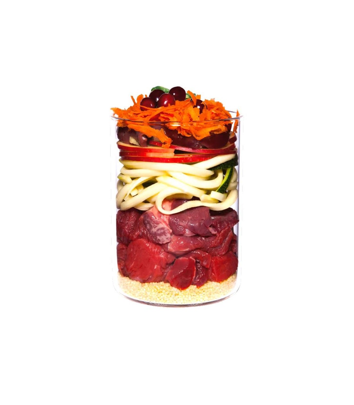 La base para una vida saludable se construye durante los primeros meses. En este tiempo, el organismo de los perros puede desarrollar desórdenes de crecimiento e intolerancias. Por ello, es importante proveer una nutrición rica en especies naturales desde el principio. Los menús Puppy de Terra Canis contienen mucha carne fresca muscular, vegetales, frutas y hierbas saludables, así como gran variedad de nutrientes naturales (algas marinas, levadura de cerveza, polen, o harina de cáscara de huevo, rica en calcio para la fase de crecimiento). Los minerales de silicio que contienen son muy adecuados para el crecimiento de articulaciones y tendones, y ayudan al cuerpo a almacenar el calcio en los huesos de manera natural. La proporción de pseudogranos gluten-free es baja, con un máximo del 5%, para que el tracto intestinal corto no se sobrecargue. Estos menús Puppy son adecuados para cachorros y perros jóvenes de hasta un año de edad.