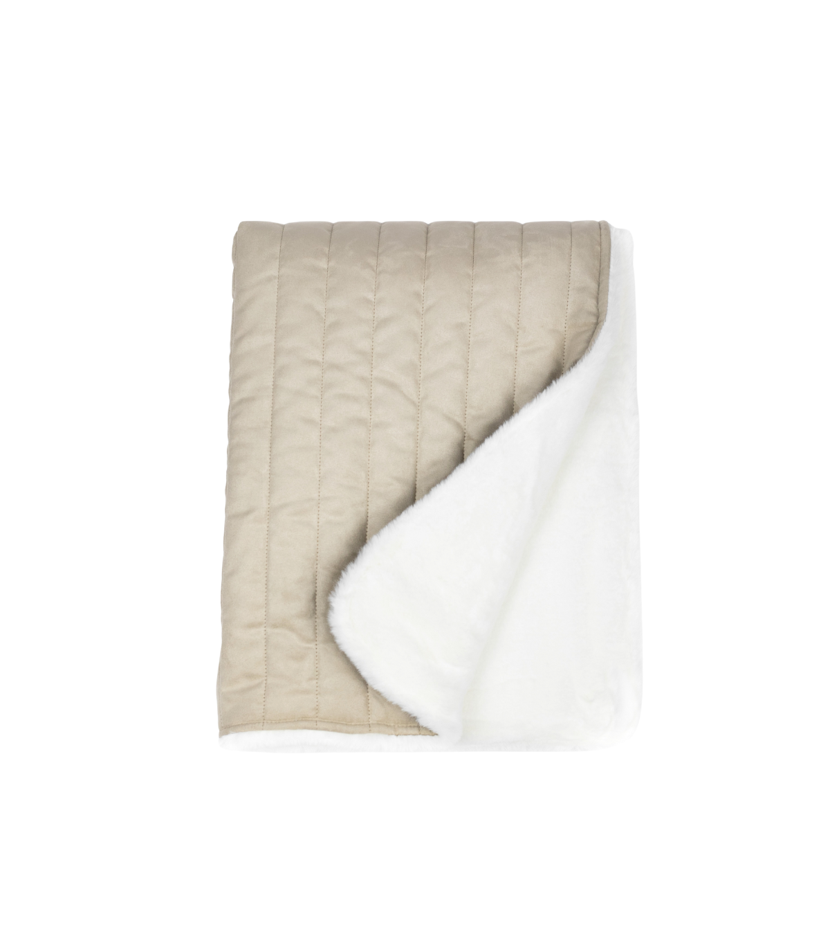 Reversible: one side with ultra-soft and thick fur and the other side with feather-like pink fabric.