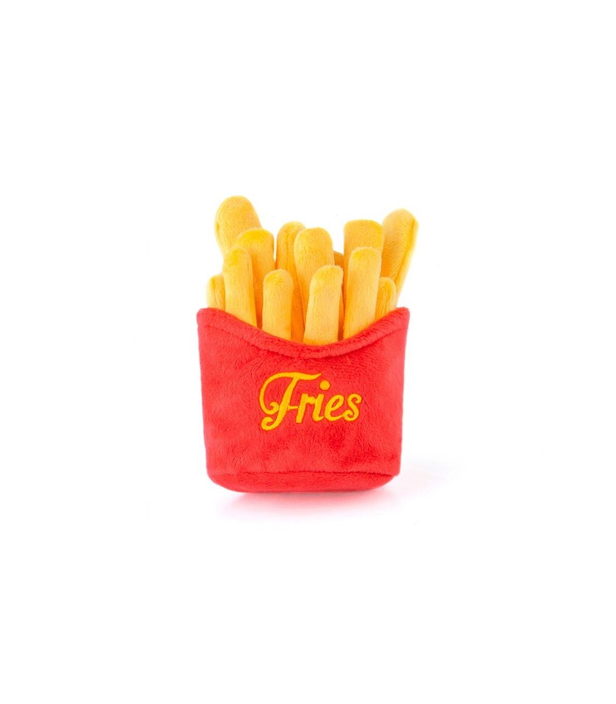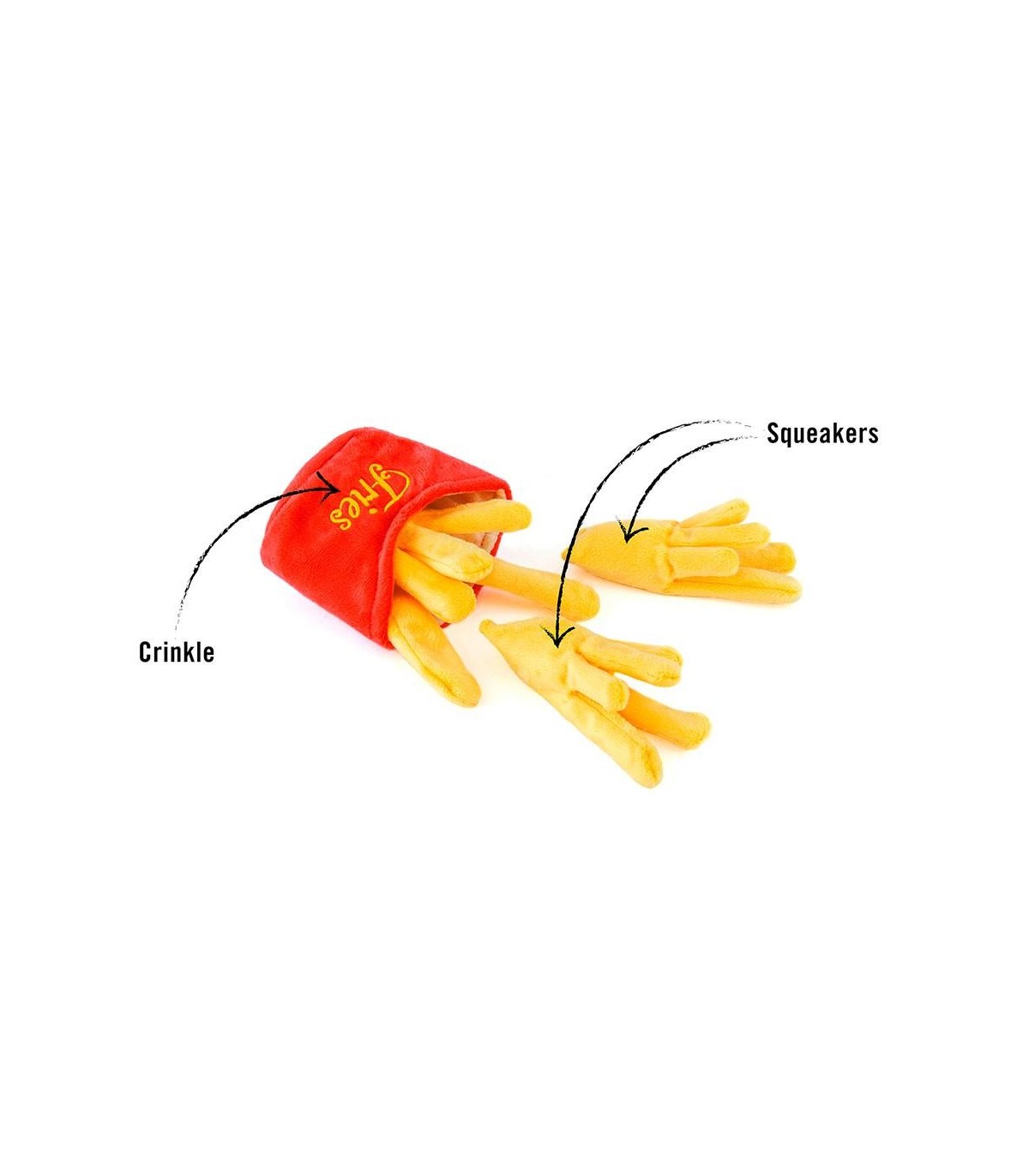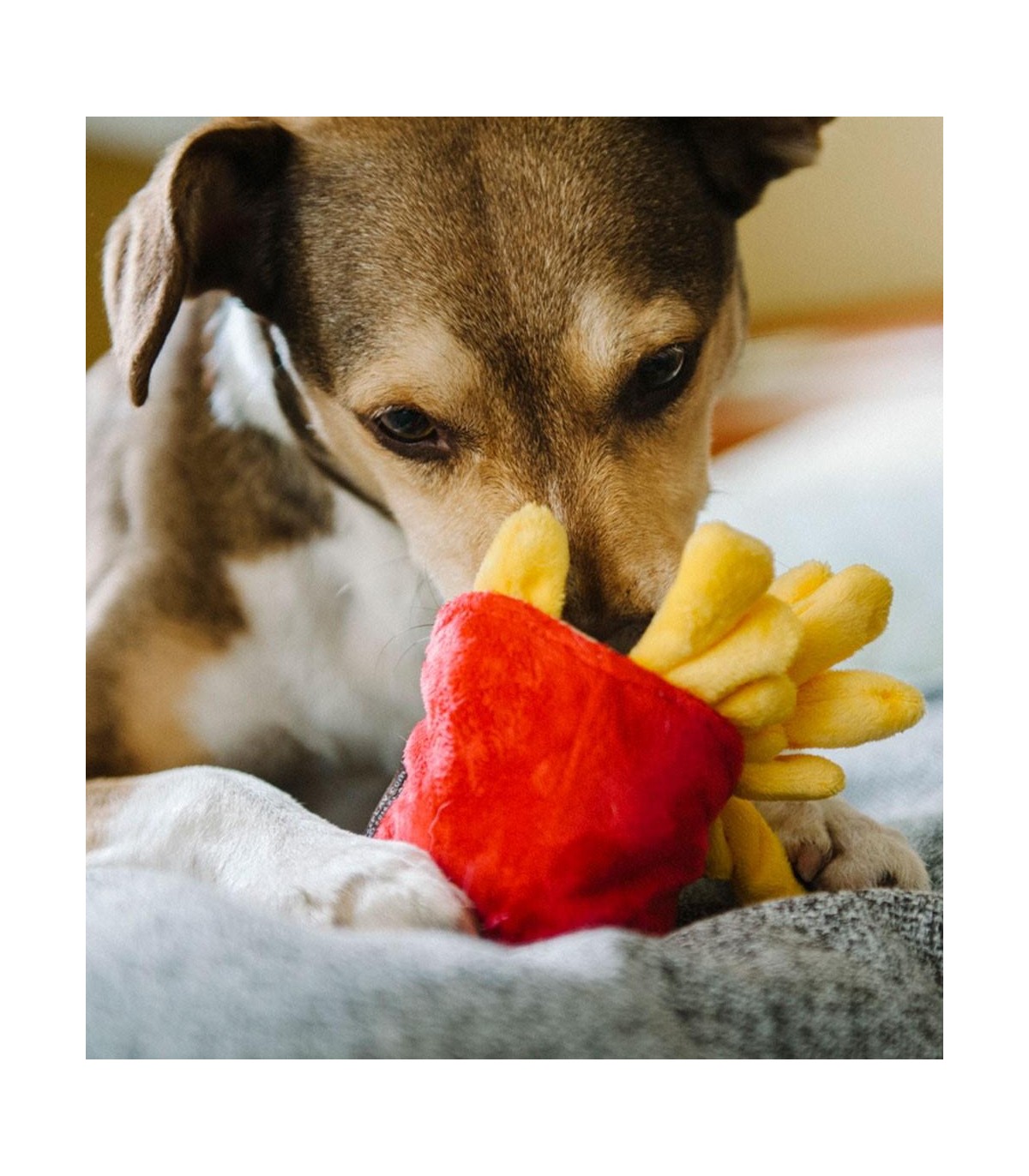 Dog toy from the brand P.L.A.Y. in the shape of French fries, very soft and squishy.