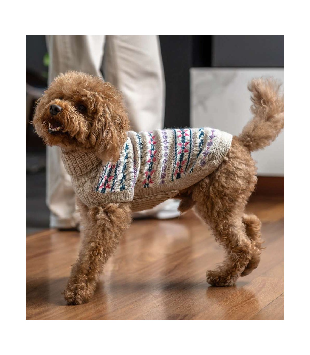 The exceptional quality of this sweater ensures that it lasts season after season and does not pill. Due to its alpaca wool composition, it is hypoallergenic and very soft to the touch for your dog's comfort.
