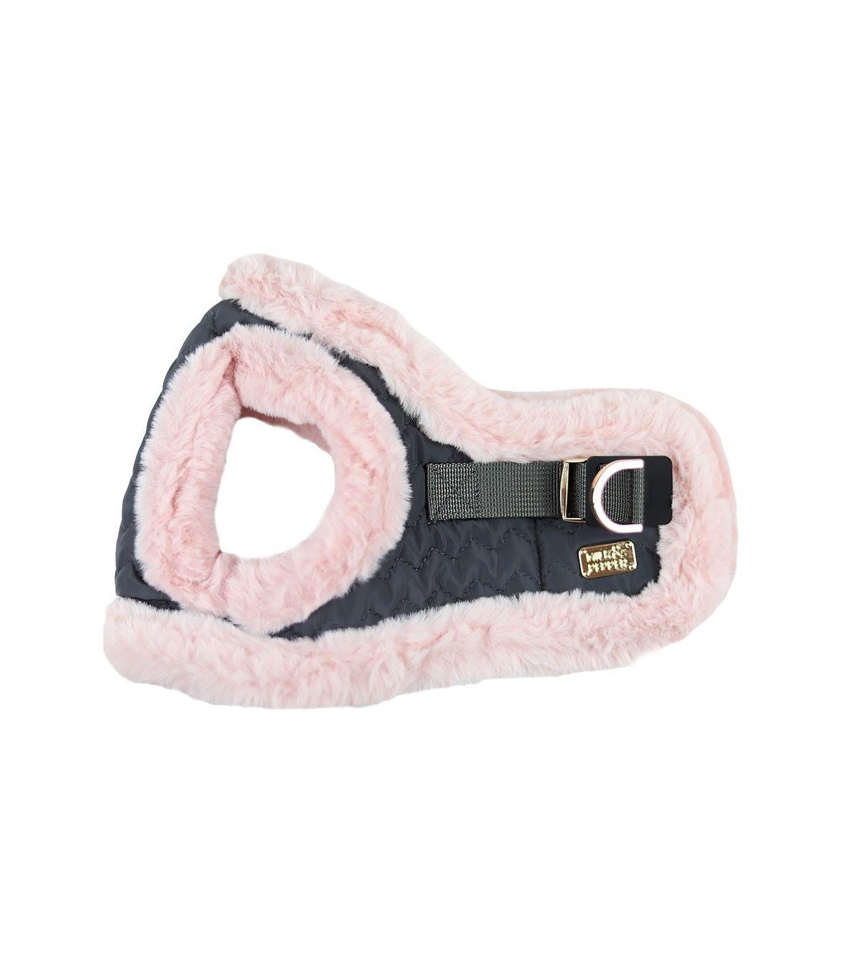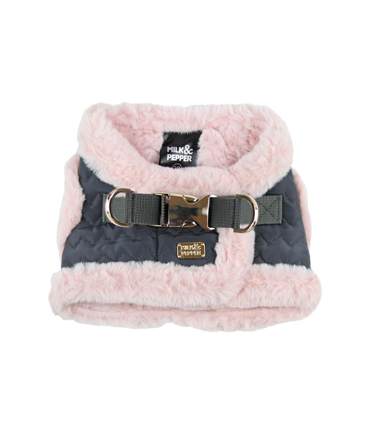 Arnés para perro de tamaño pequeño de la marca Milk & Pepper. El tejido de este arnés hace que también sea una prenda de abrigo, por lo que es ideal para los paseos en los meses más fríos.
