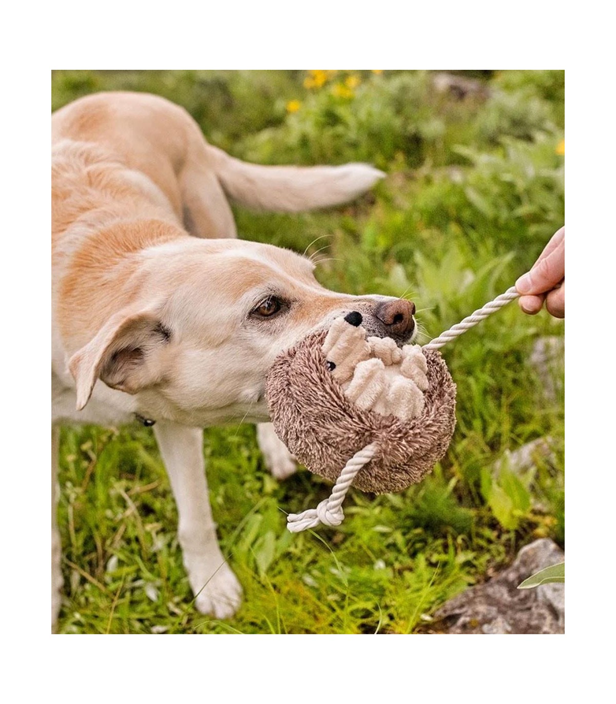 For a true nature-loving dog who enjoys walks in the countryside, this hedgehog-shaped plush toy will be a hit. It is very soft and comes with several features to keep your dog entertained for hours. A durable squeaker inside the body, a crinkly sound in the tail, and a rope on the ends perfect for tugging and pulling the plush toy.