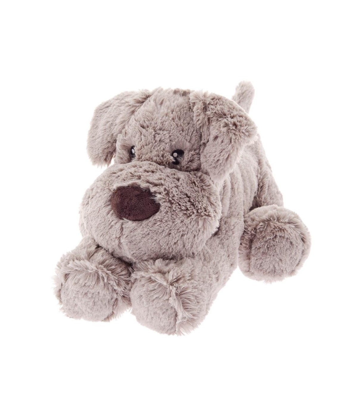 Peluche para perro de la marca Ferribiella. Este peluche con forma de perro es ultrasuave y blandito. En su interior tiene pito como papel de plástico para que se entretenga más aún al encontrarlo y sonar.