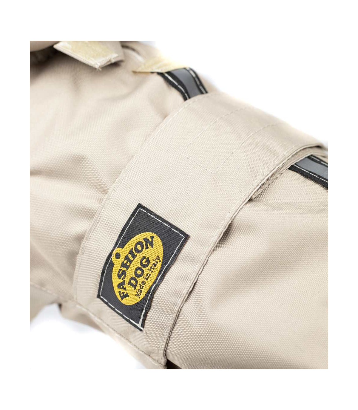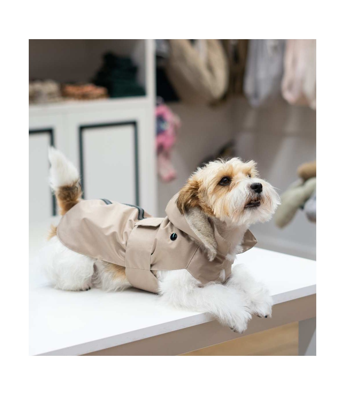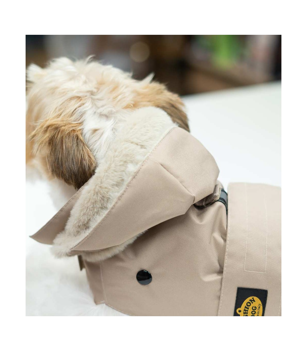 Waterproof dog raincoat from the Fashion Dog brand with a hood and removable faux fur lining.