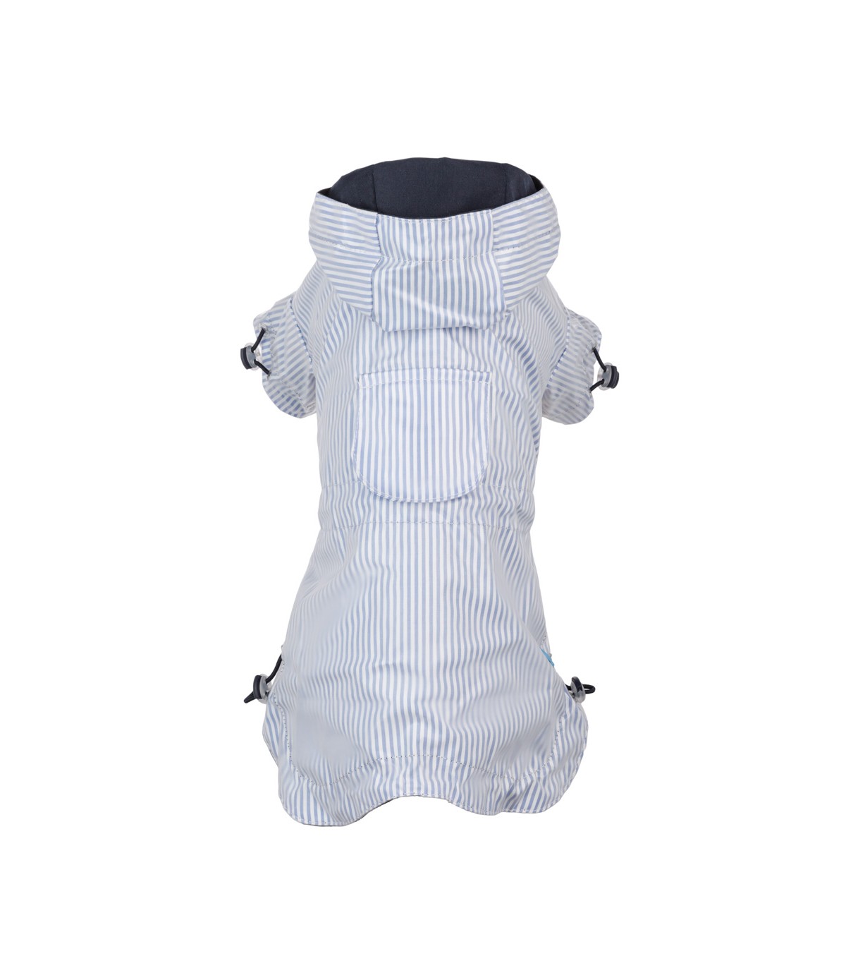 - Tiene gomas elásticas para ajustar el impermeable al cuerpo del perro y que no se cuele nada de agua.