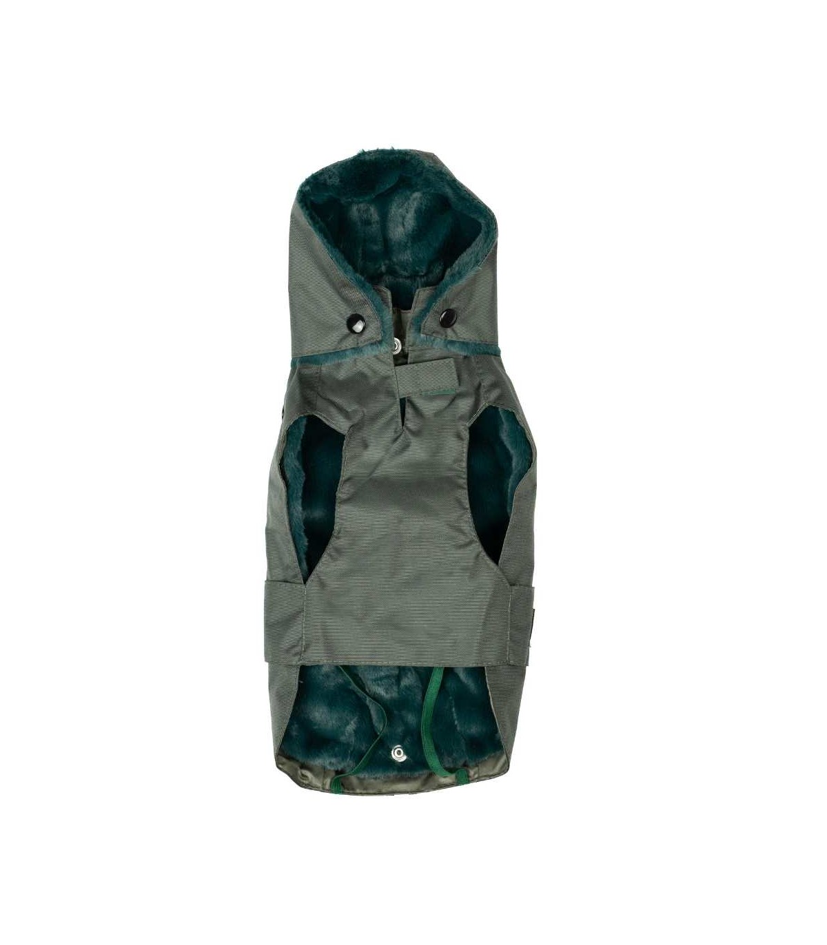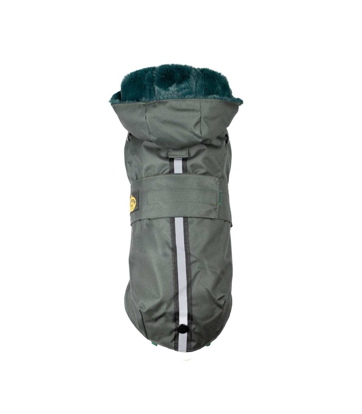 - On the back, the coat has an opening to attach the leash to the harness.