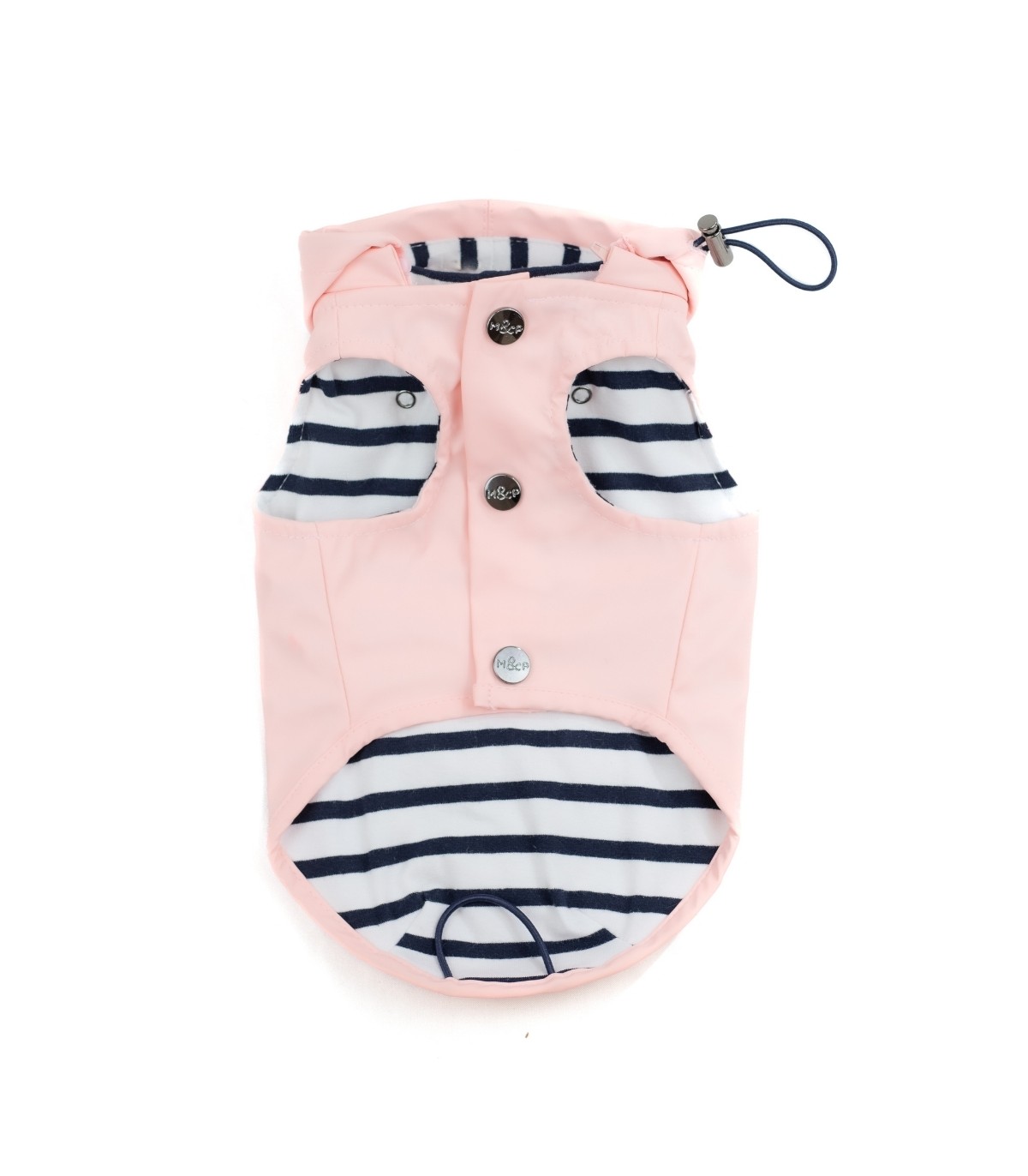 This original light pink raincoat will allow your dog to walk in the rain without getting its back or chest wet.