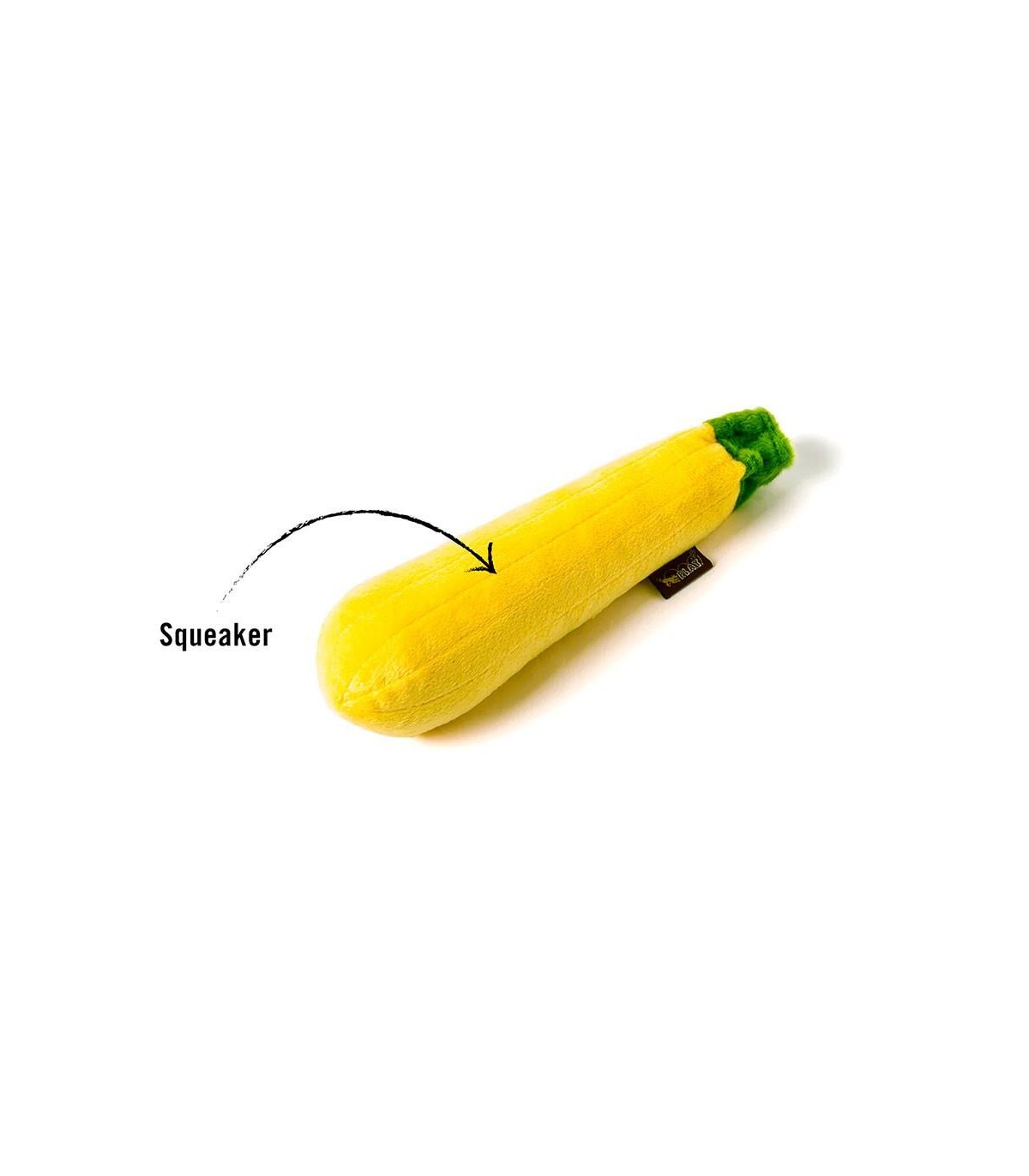 PLAY brand dog toy in the shape of a zucchini. It is soft and cuddly . Inside it has a small speaker to make your games even more fun.